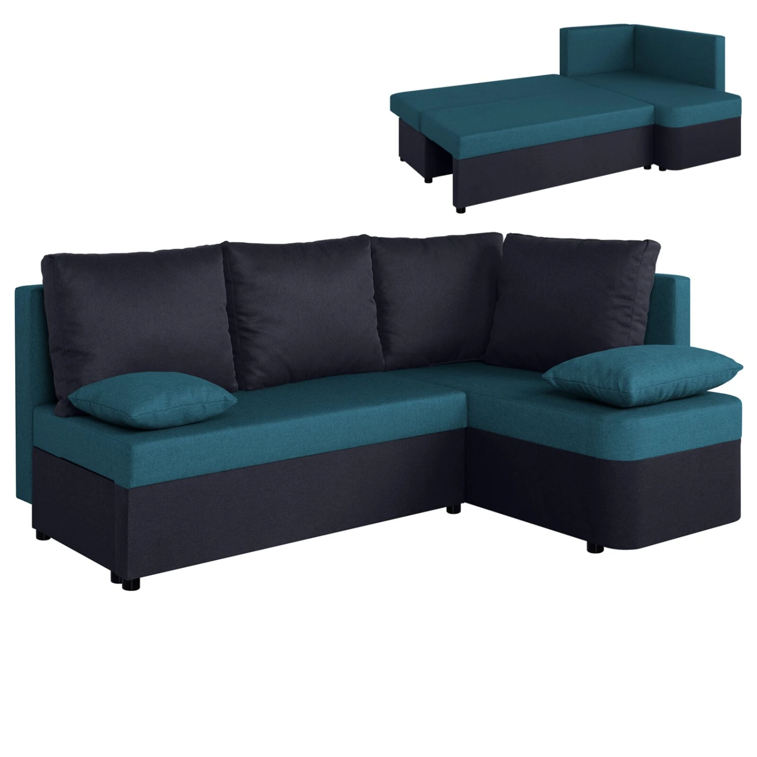 Ecksofa – petrol-anthrazit – Staukasten – Liegefunktion