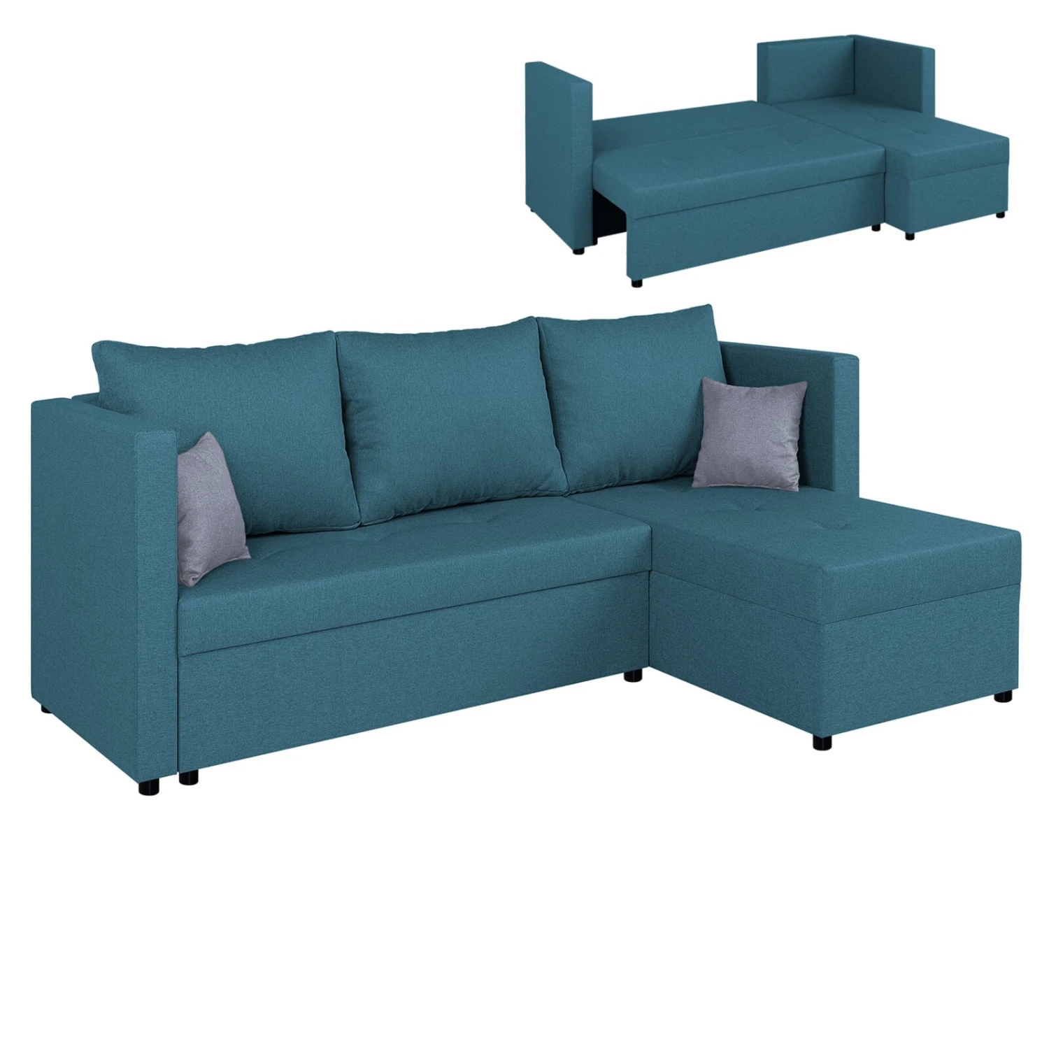 Ecksofa – petrol – Webstoff – Liegefunktion