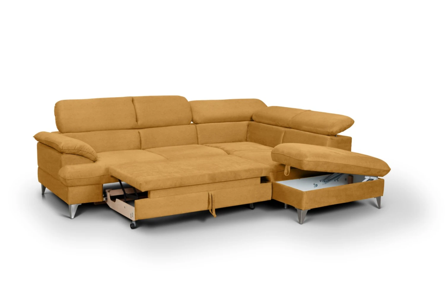Ecksofa – senfgelb – Liegefunktion – Ottomane rechts
