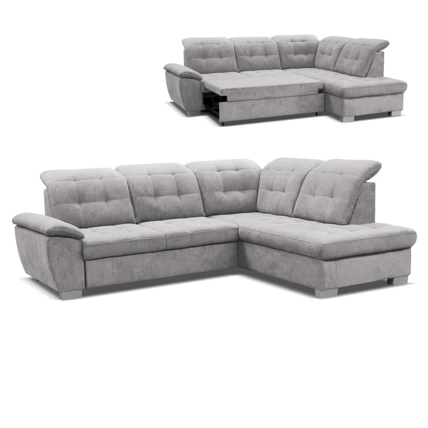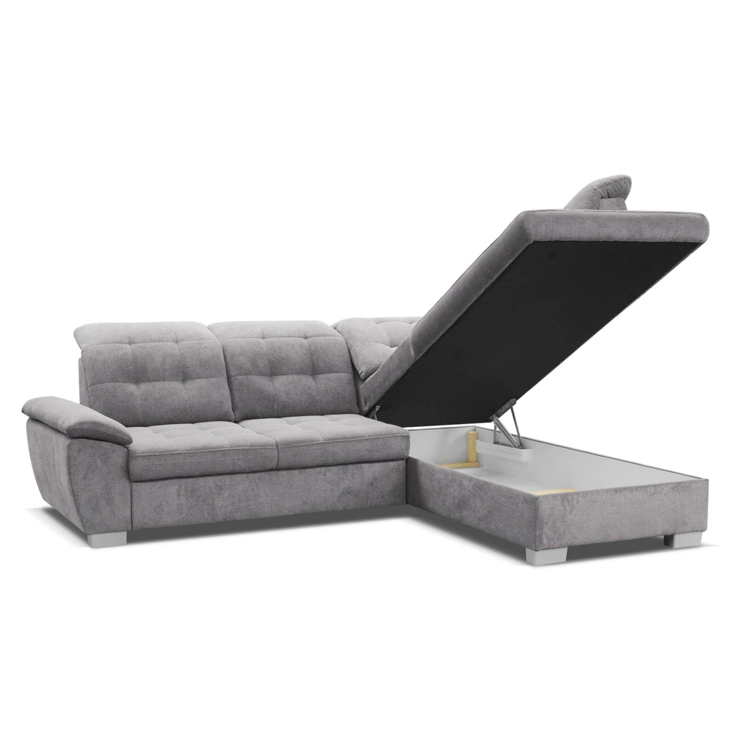 Ecksofa – silber – Staukasten – Ottomane rechts