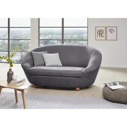 2-Sitzer Schlafsofa – hellgrau – Flachgewebe – mit Rückenkissen