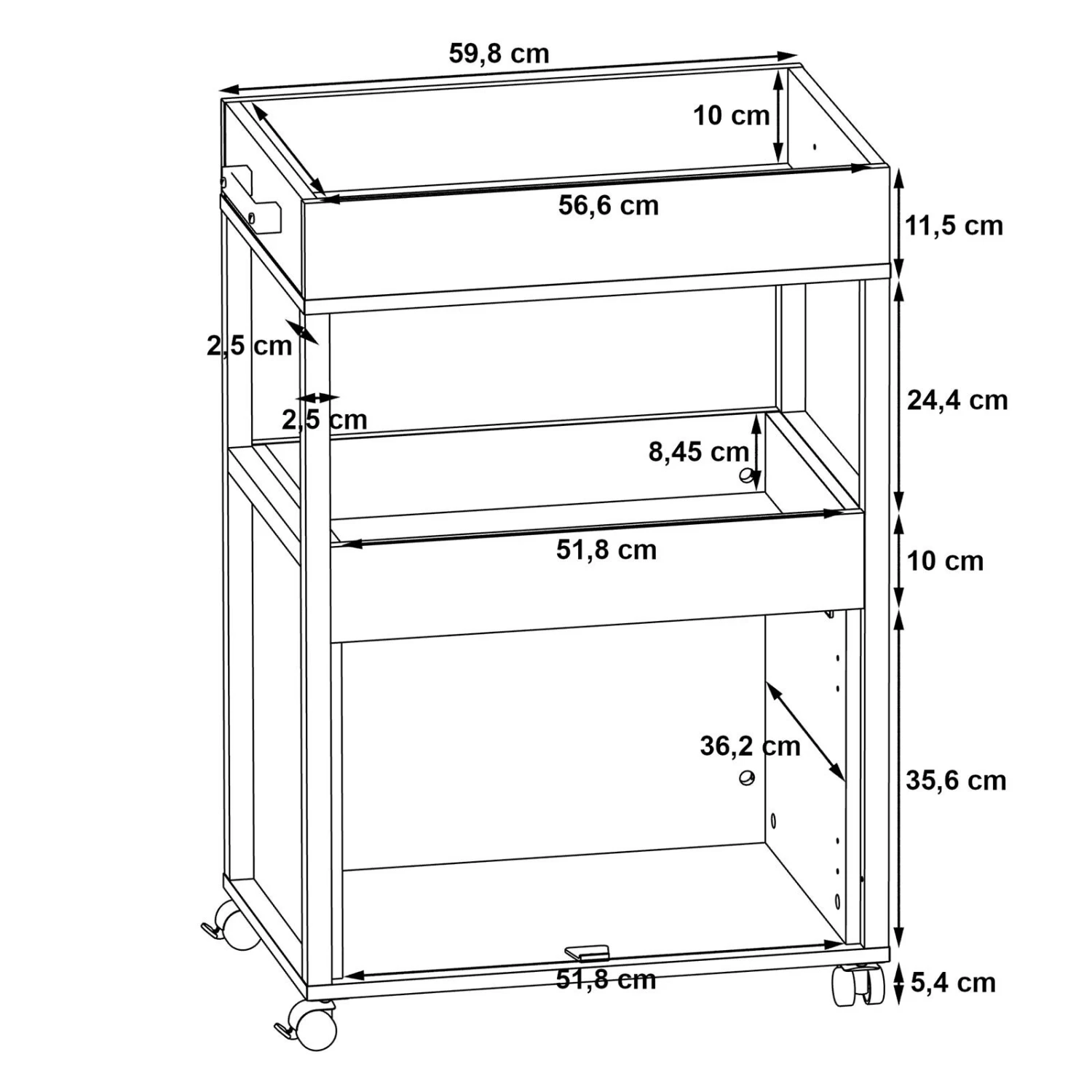 - Höhe Rollen: ca. 5,4 cm