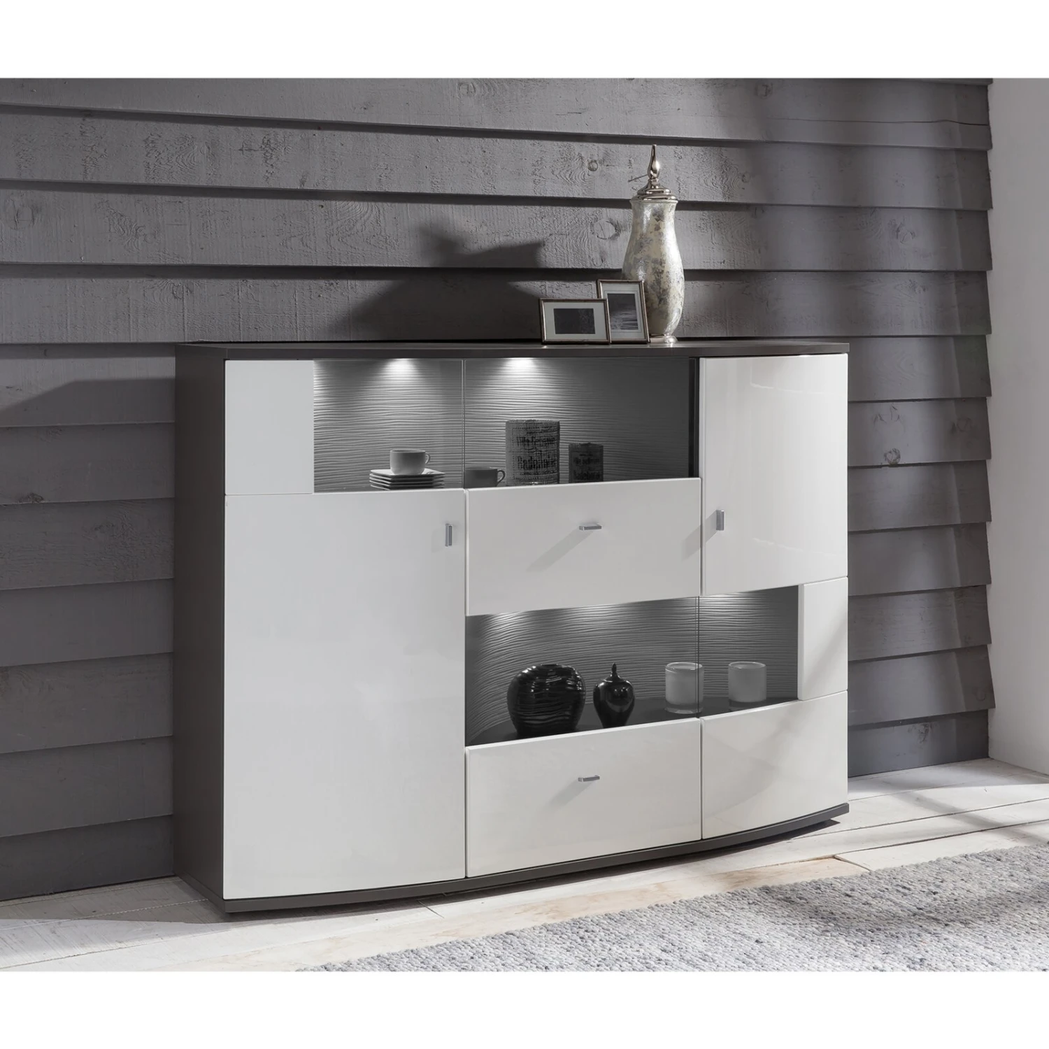 Highboard GATE – weiß Hochglanz – anthrazit – 160 cm breit