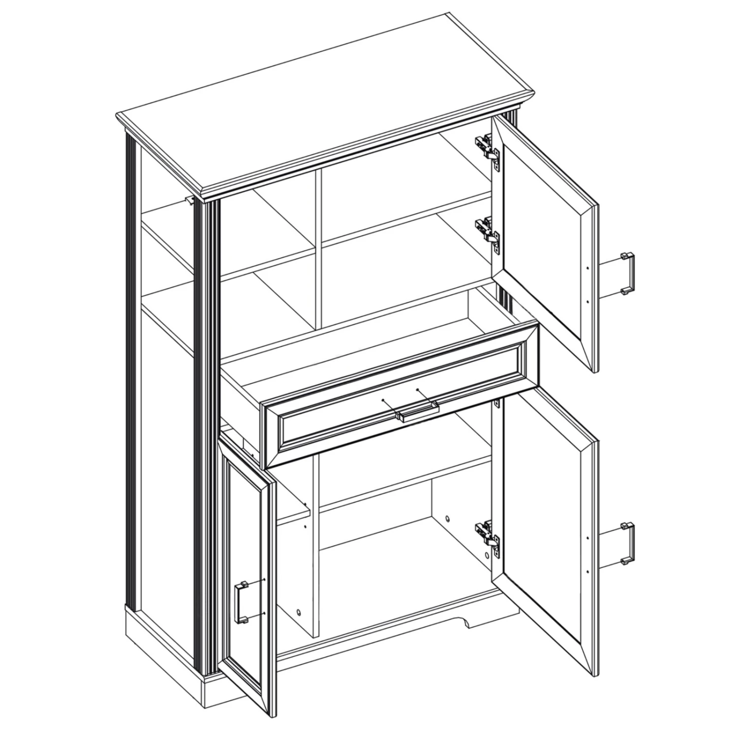 Dieses Stauraumelement bietet mit seinen drei Fächern und einem Schubkasten genügend Stauraum für Geschirr, Dekoration oder andere Gebrauchsgegenstände. In den zwei offenen Fächern können Bilder und Deko-Elemente ansprechend platziert werden. Ein besonderes Highlight ist die integrierte LED-Beleuchtung.