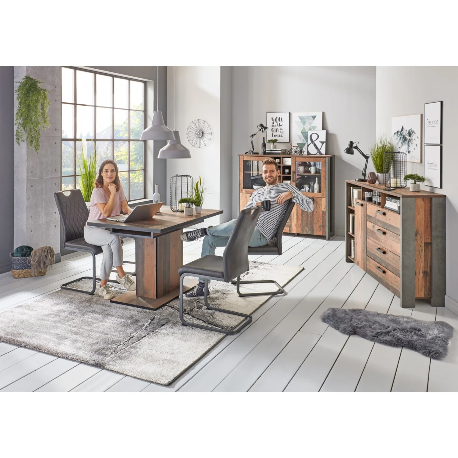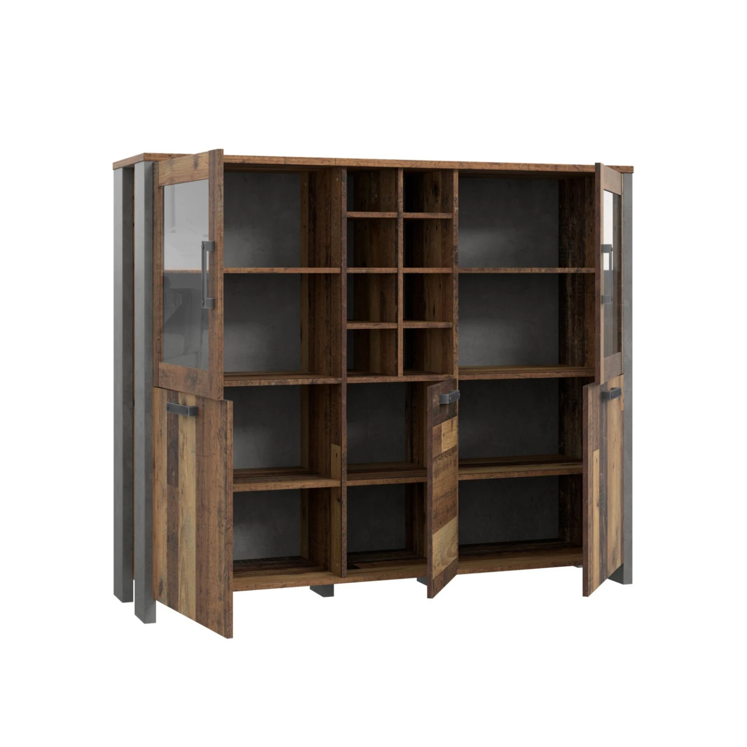 Highboardvitrine – Old Wood Vintage-Betonoptik – 151 cm breit
