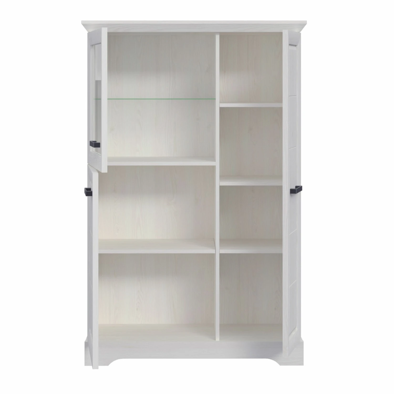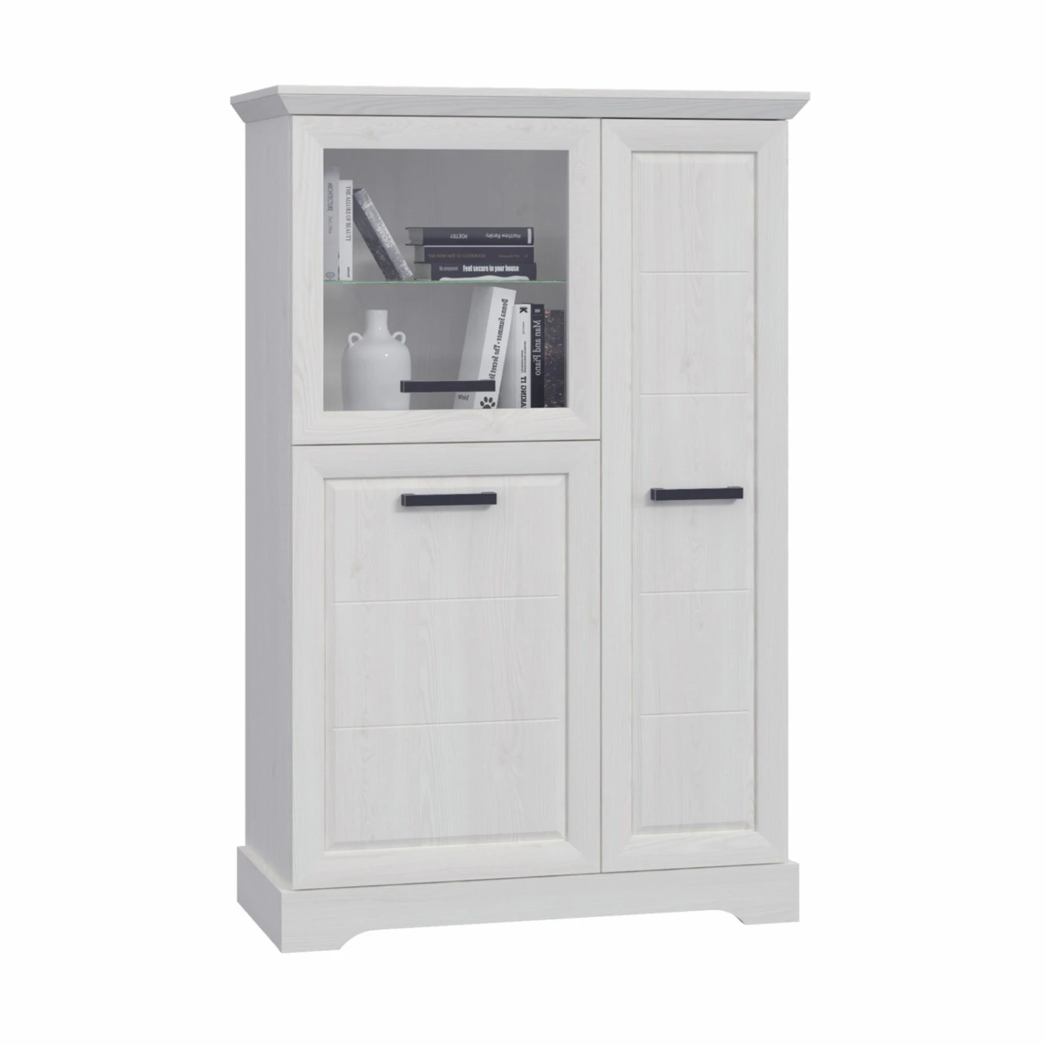 Diese Highboardvitrine im Landhausstil macht jedes Wohnzimmer perfekt! Sie ist in Sibiu Lärche Nachbildung gehalten und ist so ein echter Hingucker. Die Metallgriffe in Schwarz runden das Design zusätzlich ab. Ihre Lieblingsstücke können Sie hinter der Drehtür aus Glas in Szene setzen.