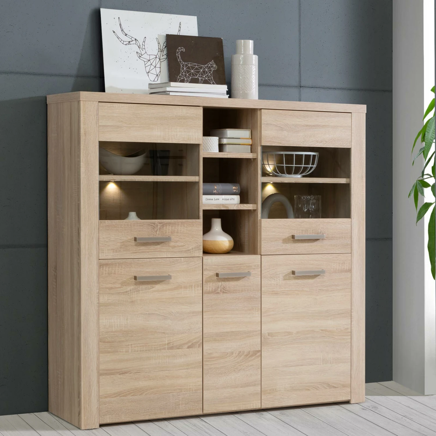 Highboardvitrine – Sonoma Eiche – 146 cm