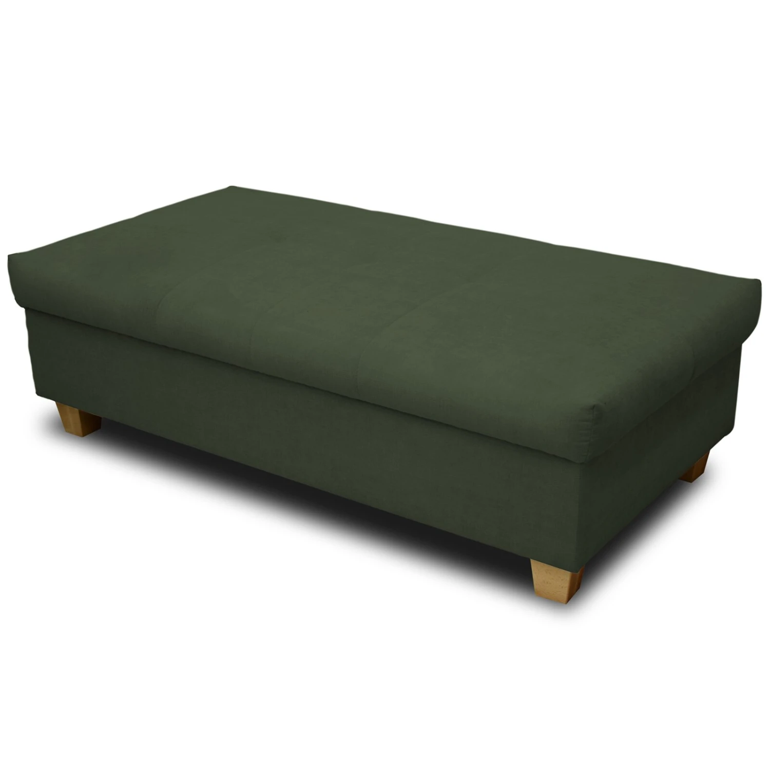 Der Polsterhocker in der Farbe Grün überzeugt durch seine hohe Funktionalität. Er dient als zusätzliche Sitzmöglichkeit im Wohnbereich und bietet außerdem weiteren Stauraum. Auch überzeugt er durch sein modernes Design.