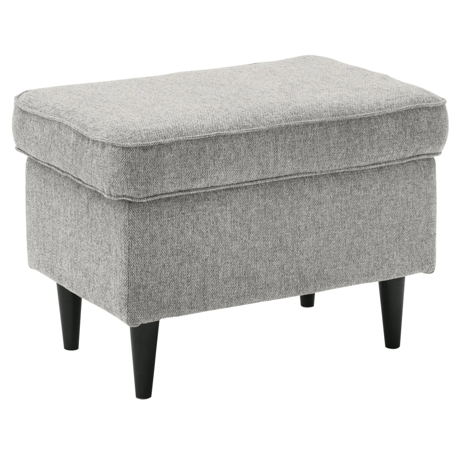 Dieser Polsterhocker in Silber ist ein echter Hingucker und wird das neue farbige Highlight in Ihrem Wohnzimmer werden. Setzen Sie sich einfach in den gleichfarbigen Ohrensessel und legen Sie Ihre Füße auf diesem Polsterhocker ab. Abgerundet wird das farbliche Design durch die schlichten schwarzen Füße aus Massivholz.