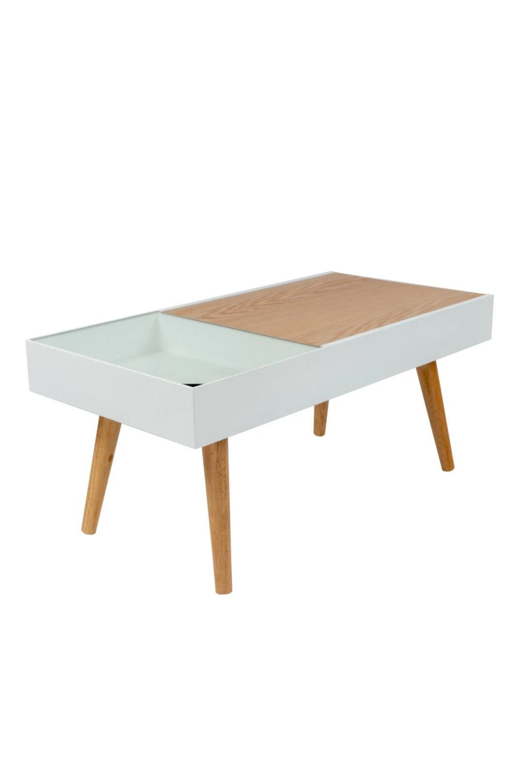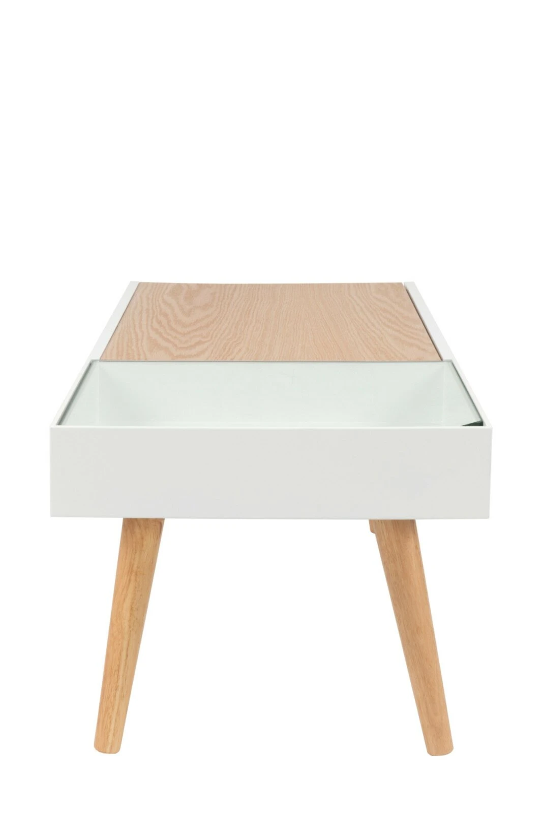 Dieser Tisch besticht mit seinem ausgefallenen Design. Die Glasplatte in der Tischplatte kann angehoben werden. So können Sie schöne Dekorationen oder Ähnliches verwenden, um dem Tisch Ihre ganz persönliche Note zu verleihen. Selbstverständlich können Sie die Deko auch den Jahreszeiten anpassen – hier ist Ihre Kreativität gefragt!