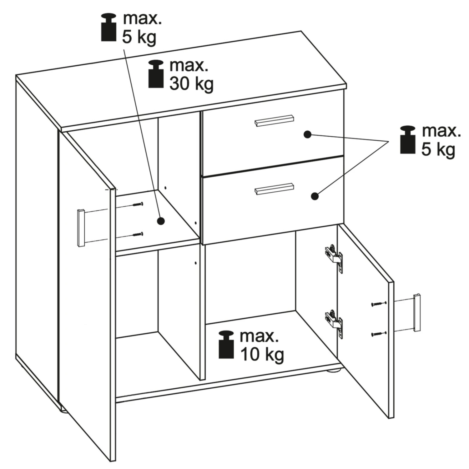 - 2 Türen, 2 Schubkästen