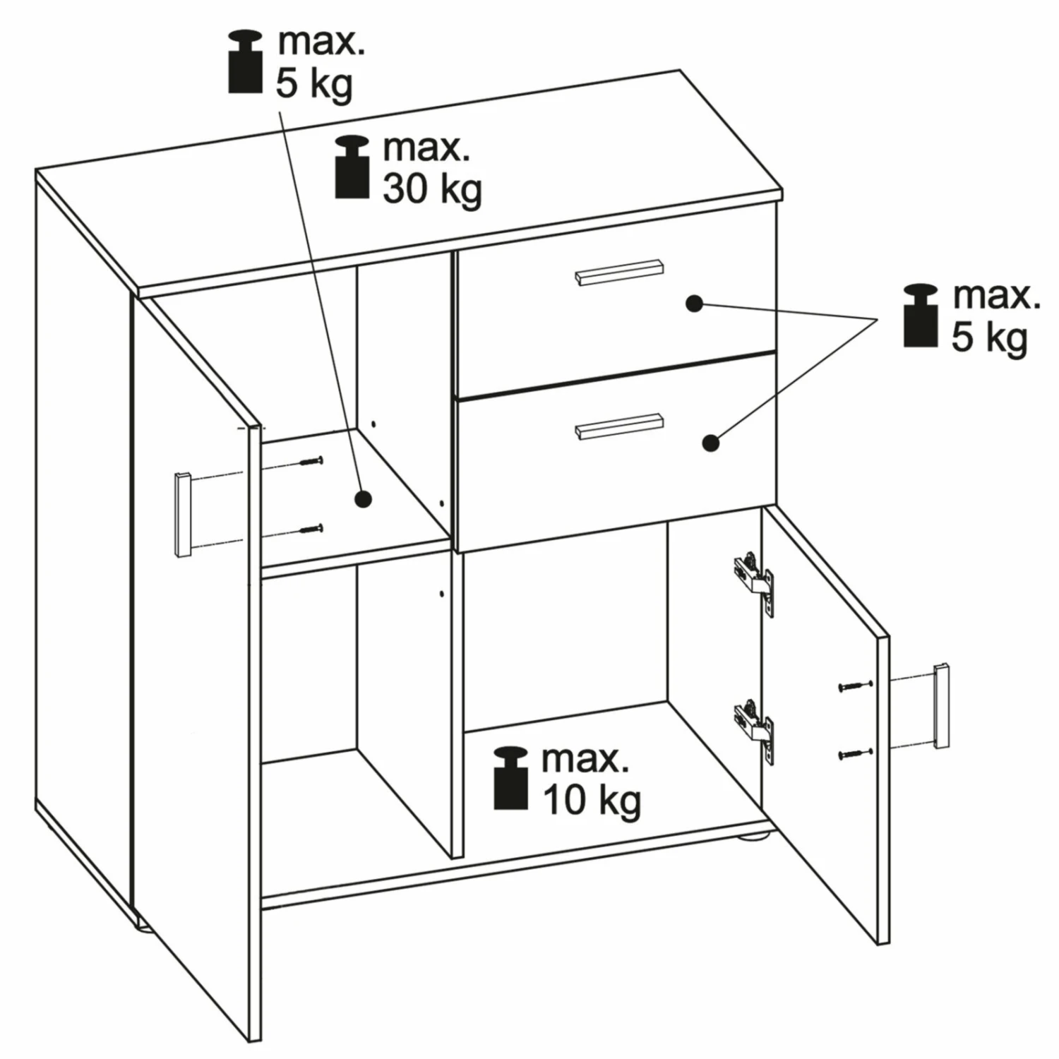 Die Kommode in Artisan Eiche-Dekor ist mit zwei Schubkästen, zwei Türen und einem Einlegeboden ausgestattet. So bietet Ihnen diese Kommode viel Stauraum und begeistert zudem mit wohnlichem Design. Egal ob im Wohnzimmer, Schlafzimmer oder der Diele – diese Kommode lässt sich wunderbar vielseitig in Ihren Einrichtungsstil integrieren.