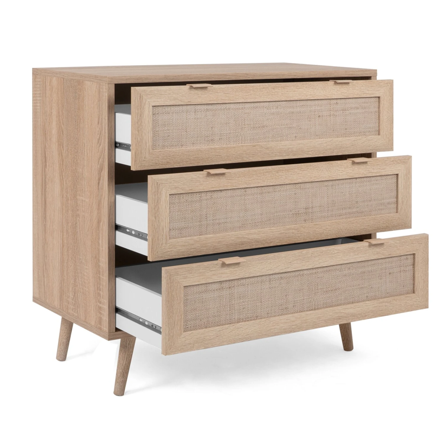 Kommode BALI – Sonoma Eiche-Rafia geflecht – 80 cm breit