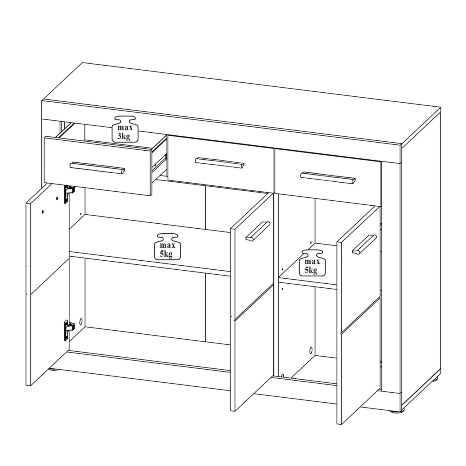 - 3 Türen & 3 Schubkästen