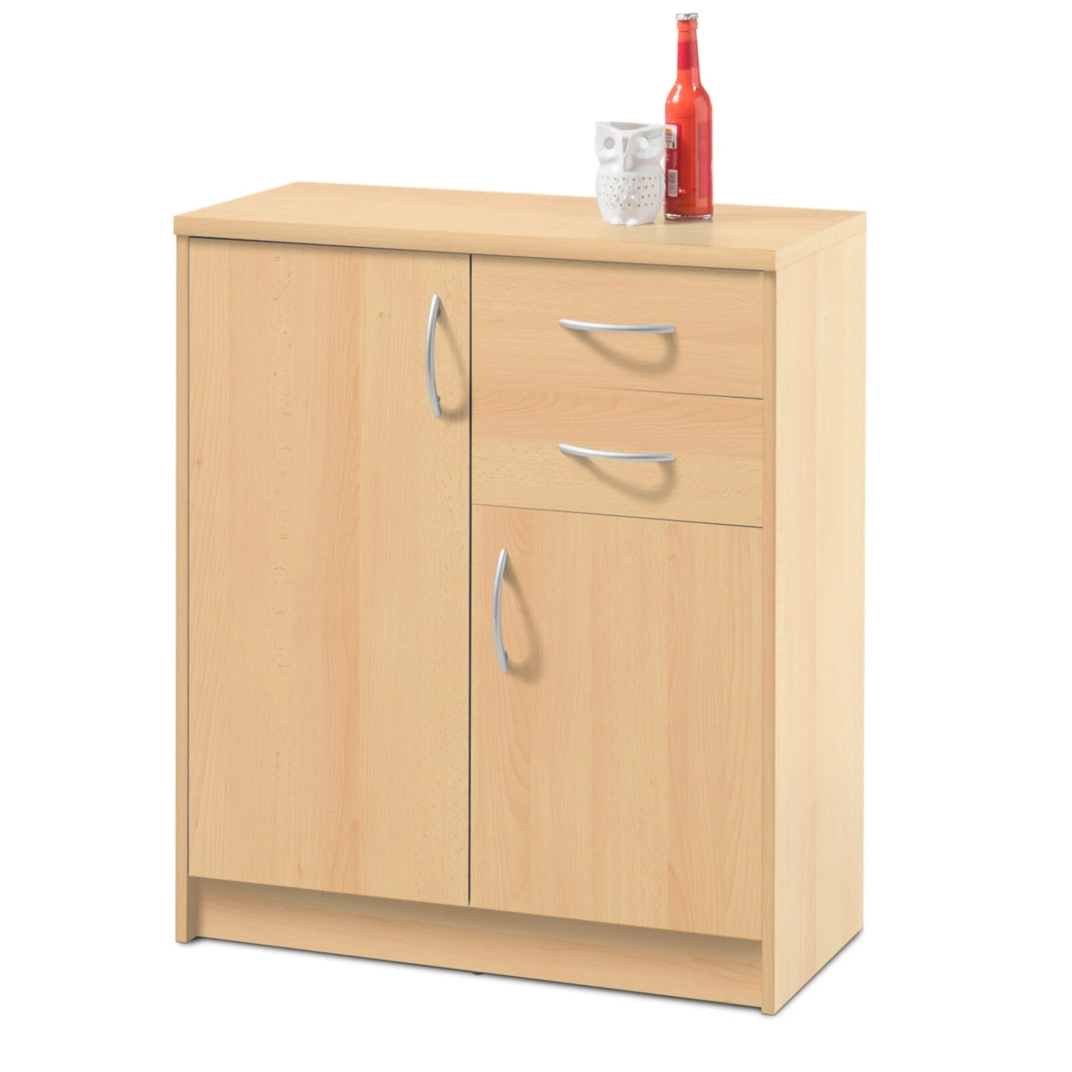 Schlichte Kommode in Buche Nachbildung für Ihr Büro! Sie ist mit zwei Türen und zwei Schubkästen ausgestattet und bietet somit ausreichend Stauraum für sämtliche Utensilien.