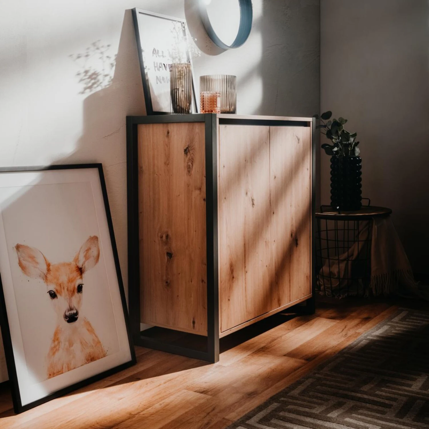 Die Kommode DENVER sieht sehr modern aus. Die Farbkombination harmoniert im Einklang und erzeugt eine wolhfühlende Atmosphäre. Durch das stylische Design wird dein Raum optisch aufgewertet und kann perfekt mit dem Industrial Style kombiniert werden.