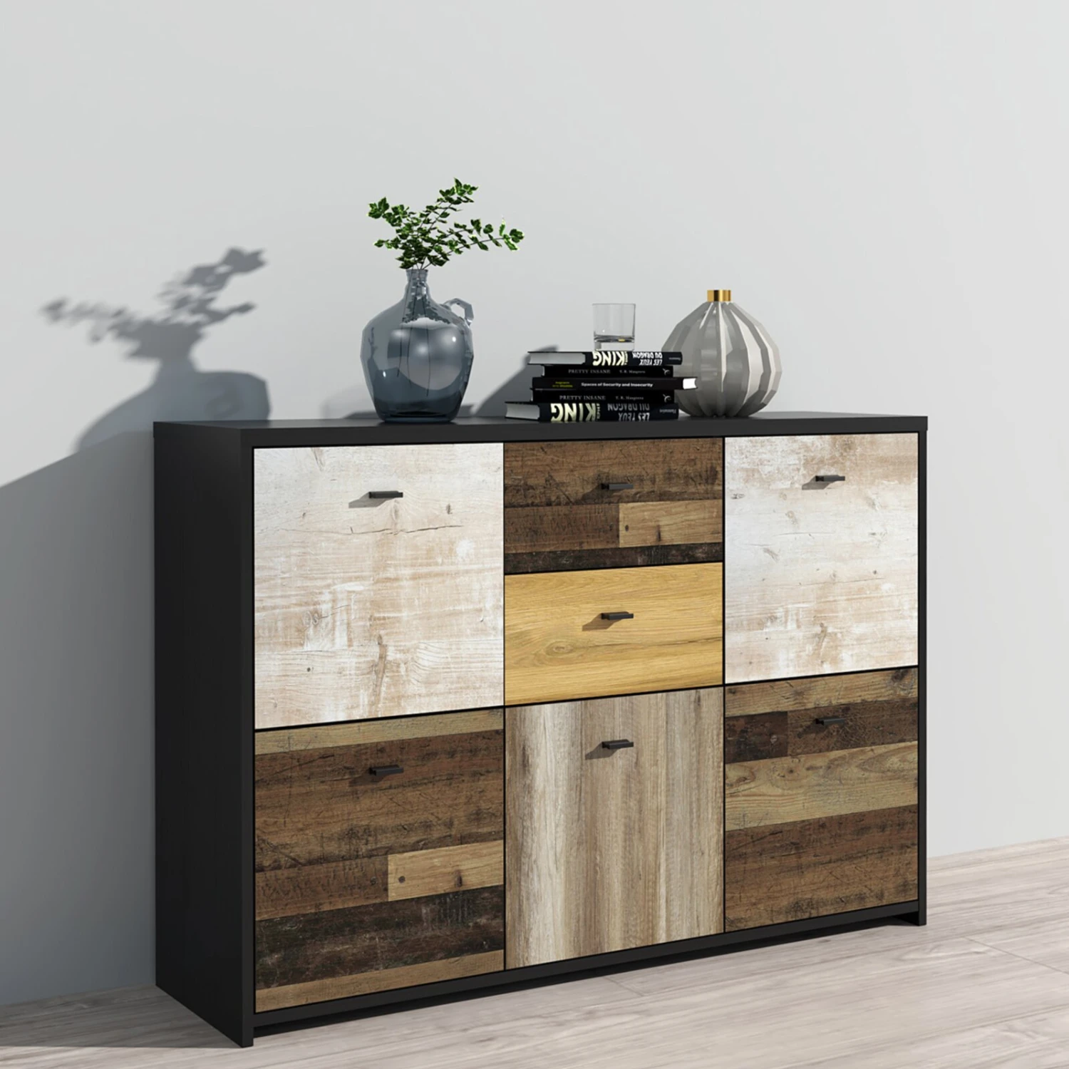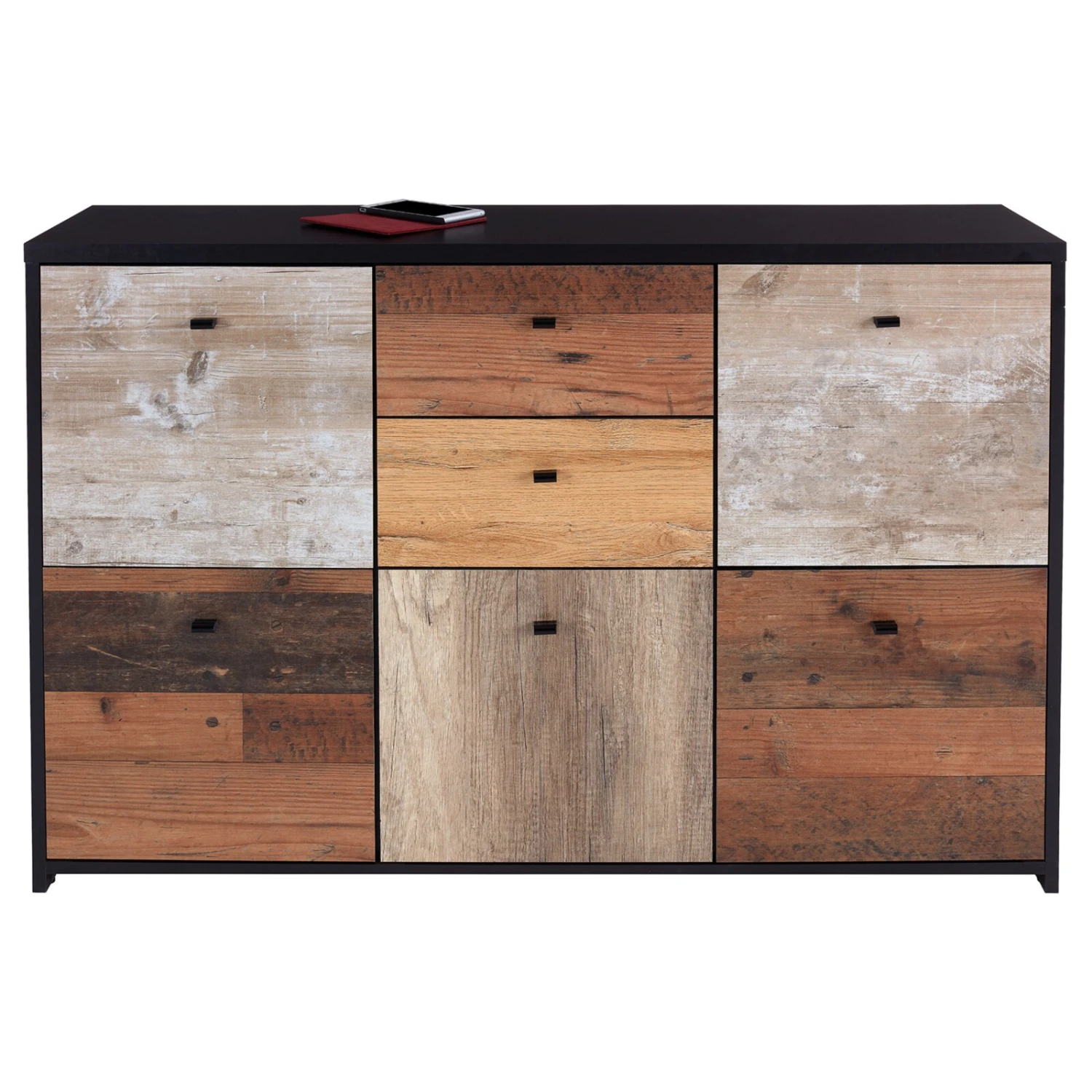 Kommode – Eiche-Pinie-schwarz – 114 cm breit