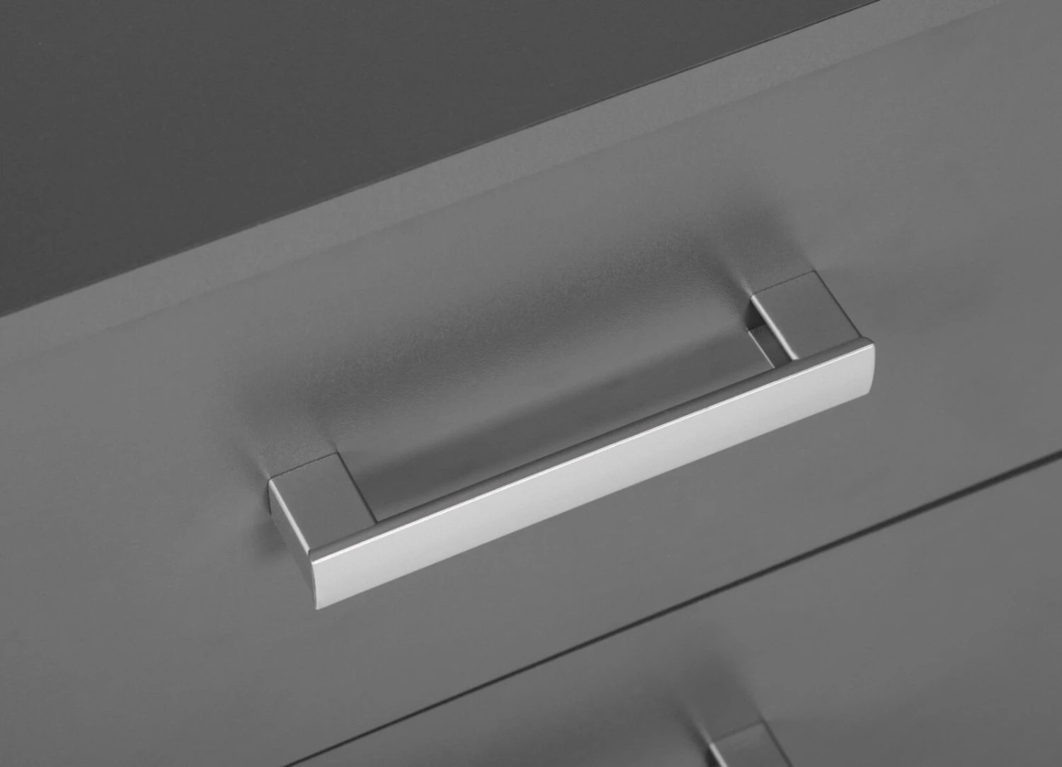 Diese moderne Kommode ELENZIO ist in Graphitgrau gehalten und passt somit zu jeder Einrichtung. Sie ist mit sechs Schubkästen ausgestattet, die sich über sechs alufarbene Griffe öffnen lassen und bietet somit jede Menge Stauraum.