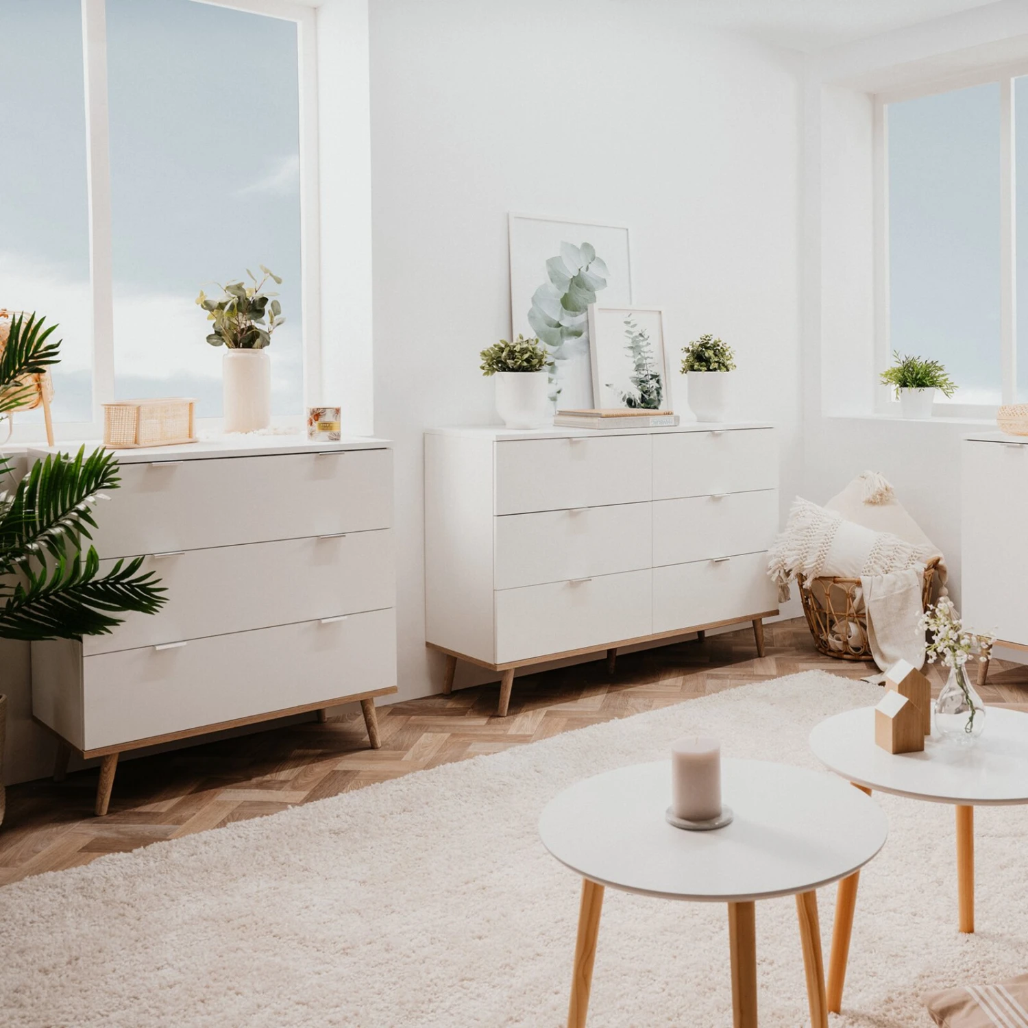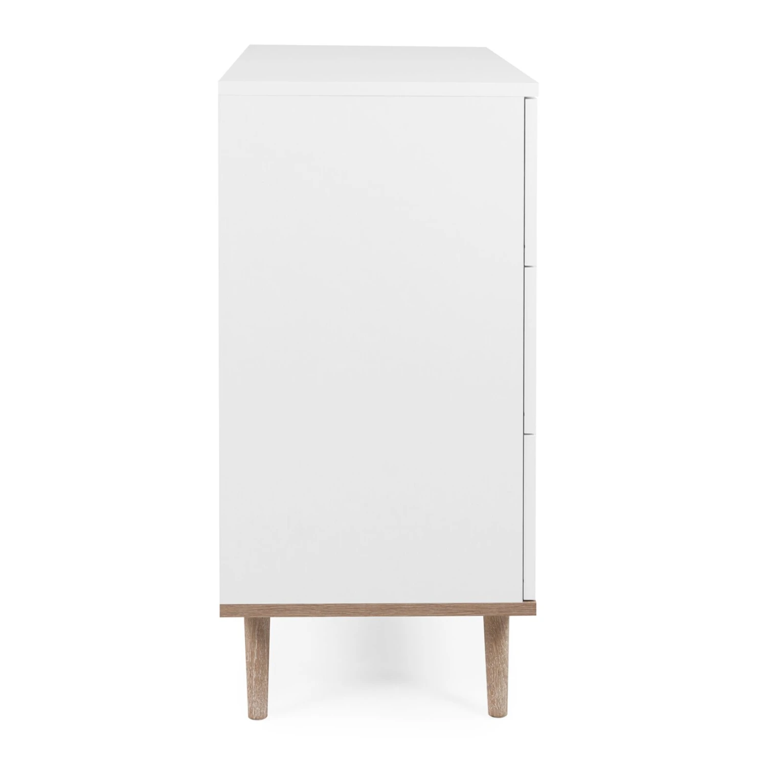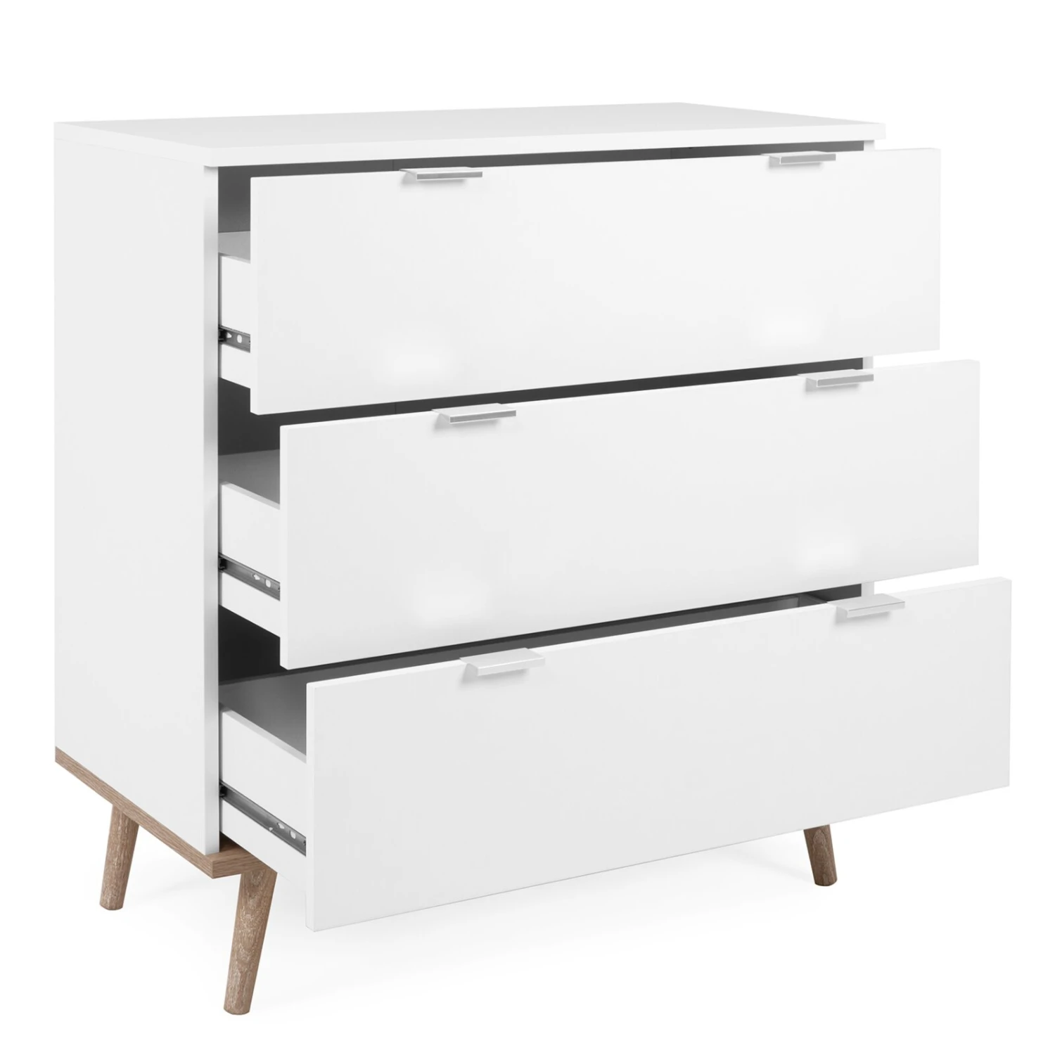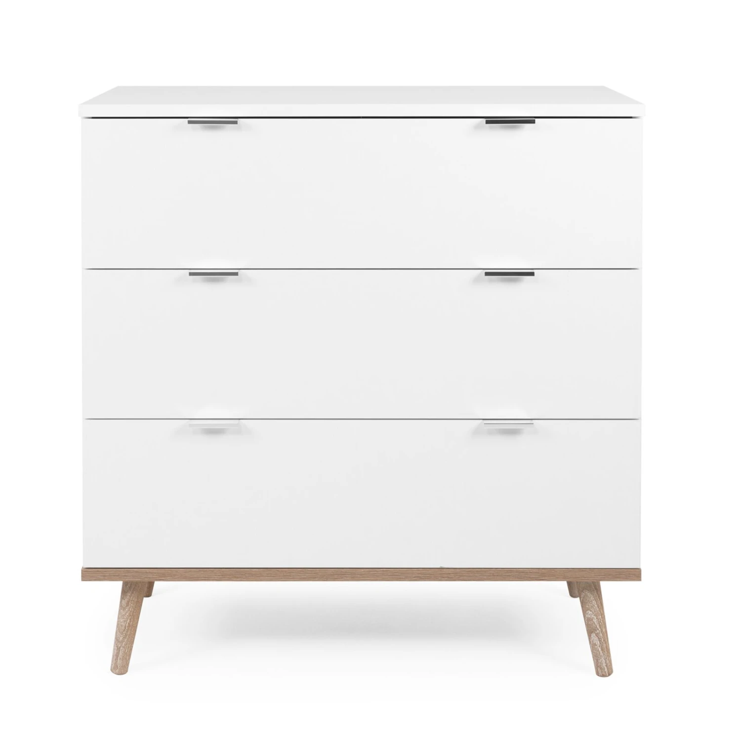 Die klassische Kommode beinhaltet auf einer Höhe von etwa 87 Zentimetern drei Schubkästen, die Ihnen vielfältige Ordnungsmöglichkeiten bieten. Mit ihrem unaufgeregten, skandinavischen Design passt die Kommode zu vielen Einrichtungsstilen und in verschiedene Zimmertypen – ob für Kleidungsstücke im Schlafzimmer, Tischdecken im Esszimmer oder Dekoartikel im Wohnzimmer, nutzen Sie den Platz einfach, so wie Sie es am besten brauchen. Ausdrucksstark sind ihre konischen Füße aus massivem Holz, die auch für zusätzliche Stabilität sorgen.