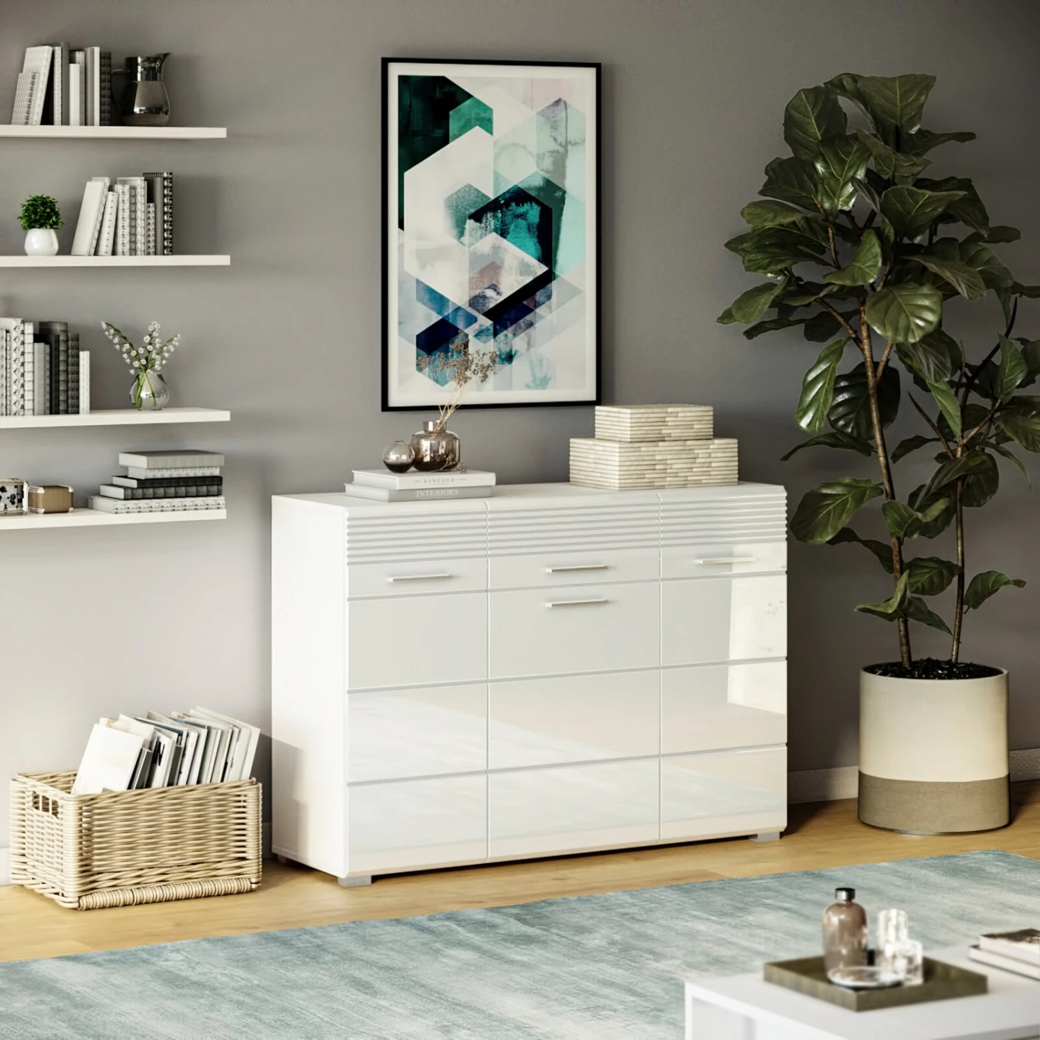 Kommode LINUS – weiß Hochglanz-weiß – Schubkasten – 115 cm