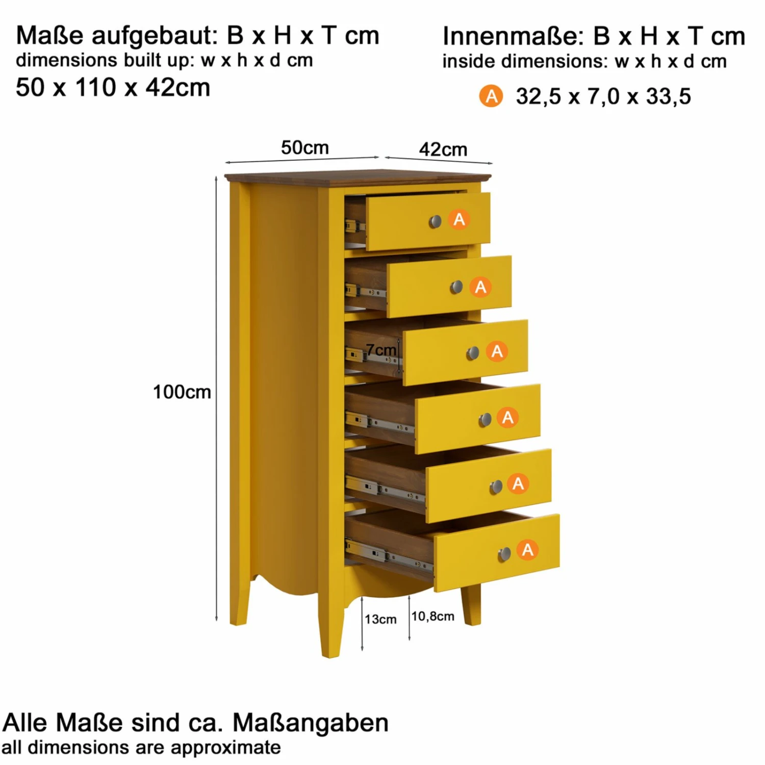 - Maße: BxHxT ca. 50 x 110 x 42 cm