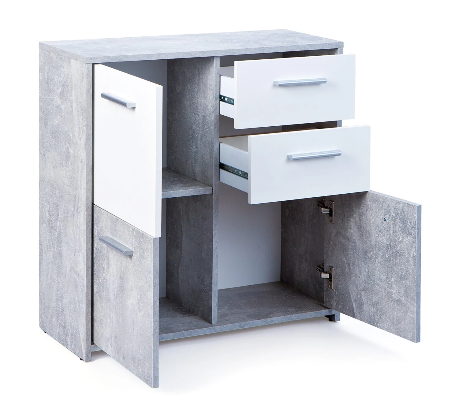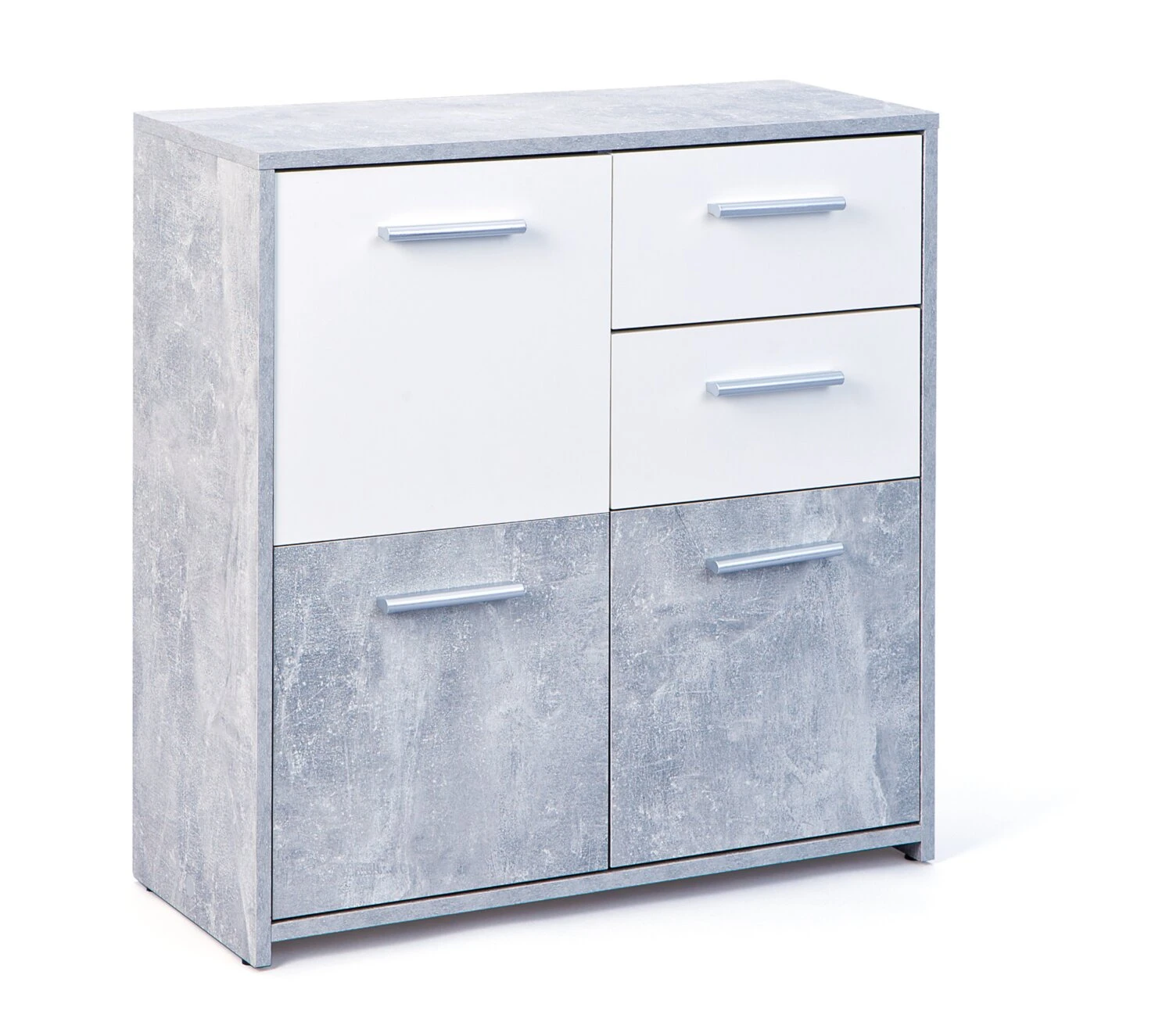 Kommode NICOLUS – weiß – Betonoptik – 77 cm breit