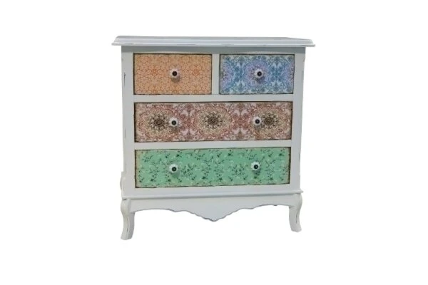 Kommode Paisley – shabby chic – weiß-bunt – mit 4 Schubladen