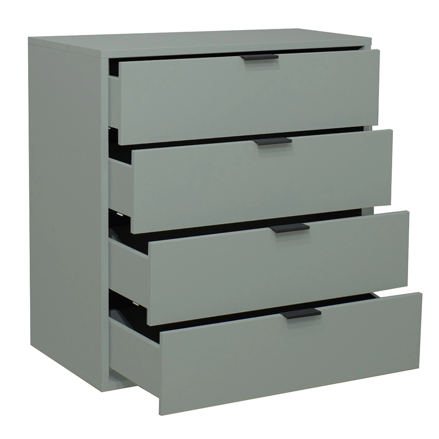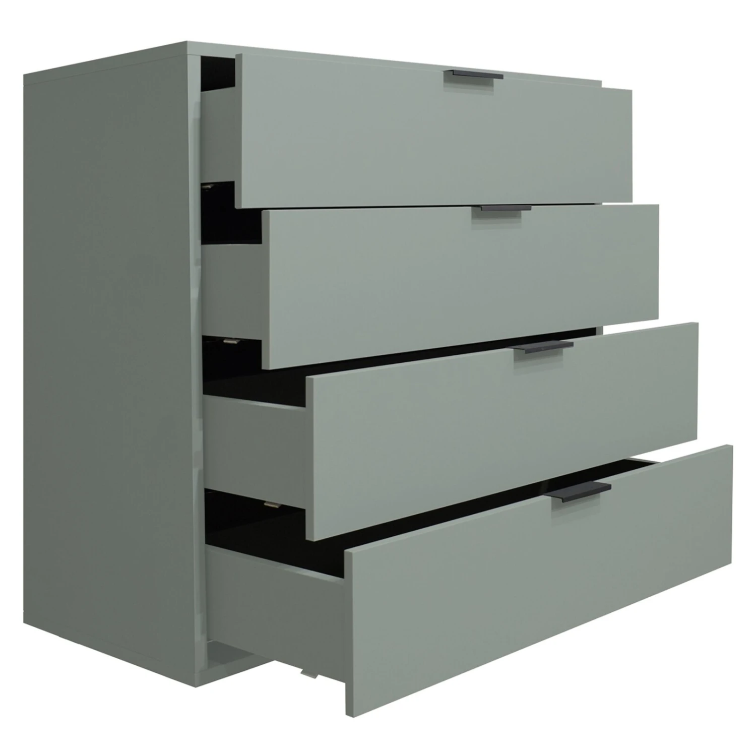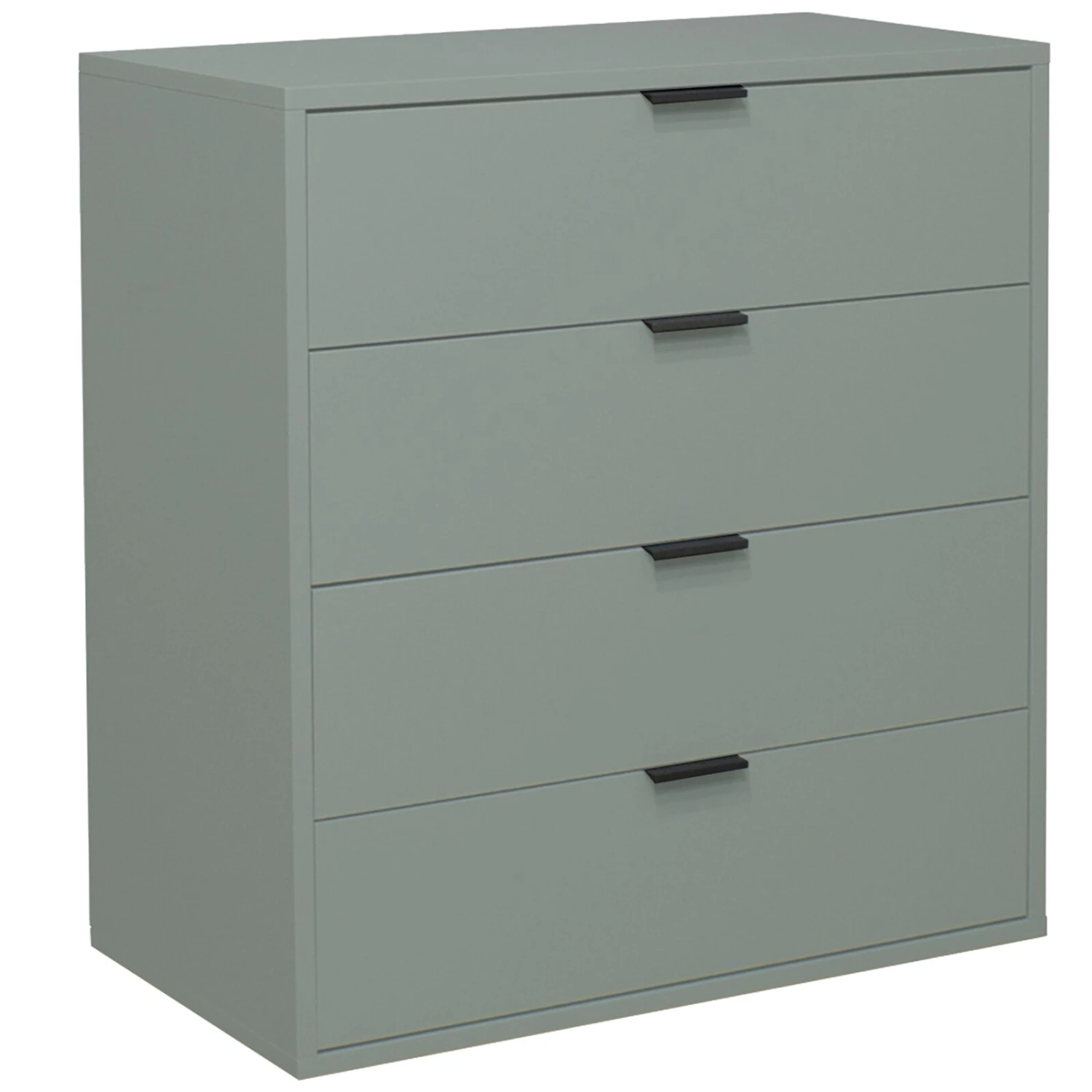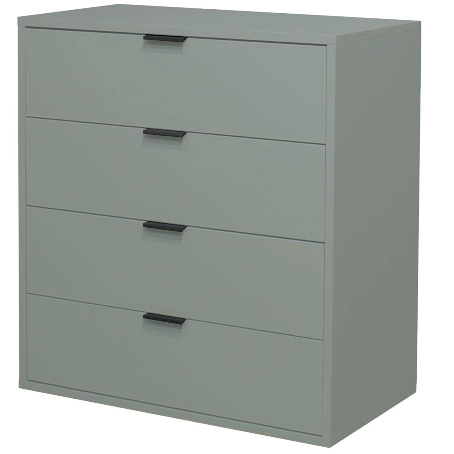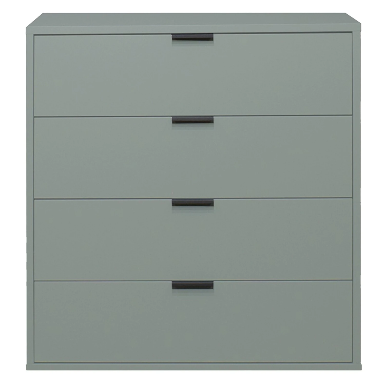 Die etwa 81 Zentimeter breite Kommode bietet dir mit insgesamt vier Schubkästen viele Stauraummöglichkeiten für die verschiedensten Utensilien. Die Farbgebung in Pine Green lässt sich mit den unterschiedlichsten Einrichtungsstilen kombinieren.