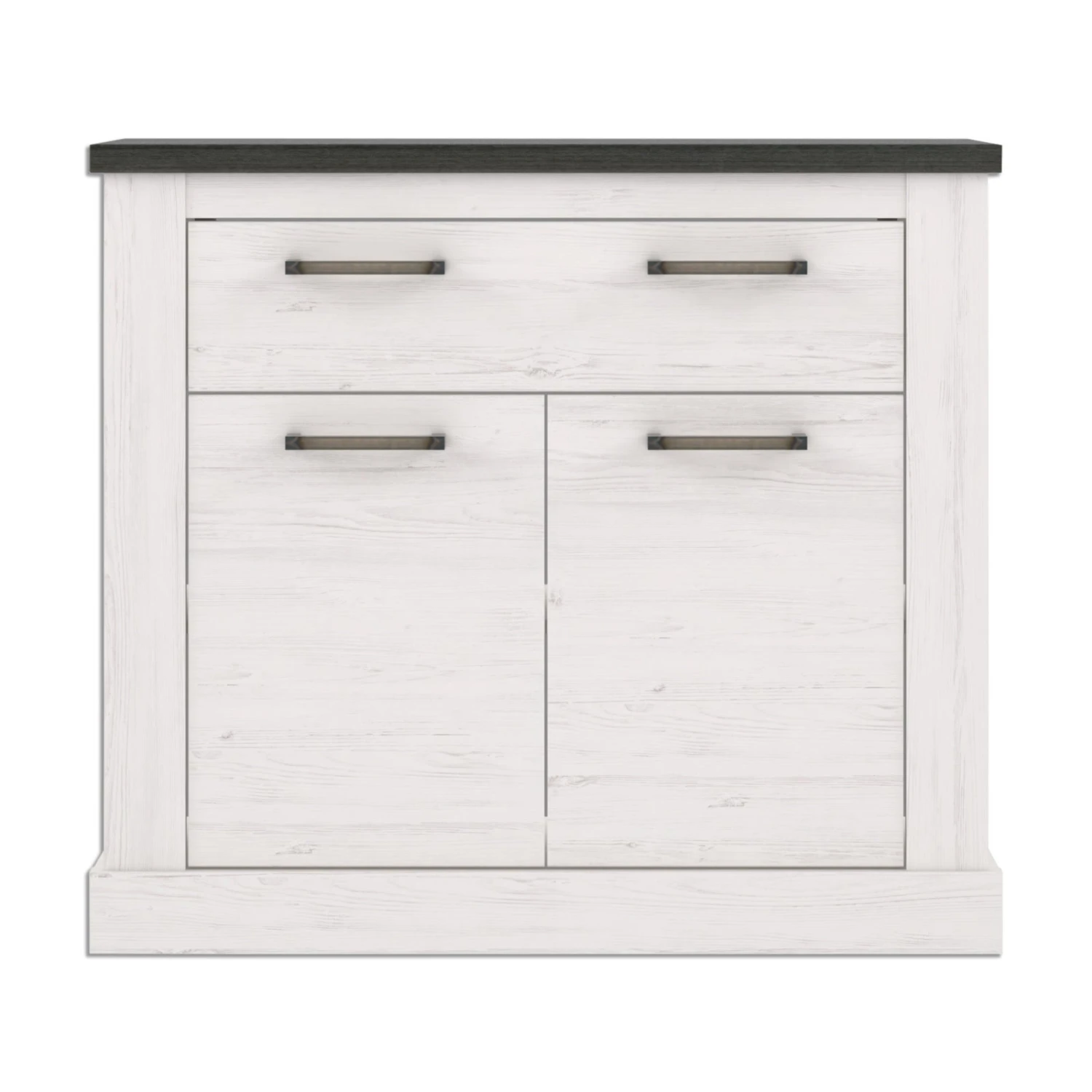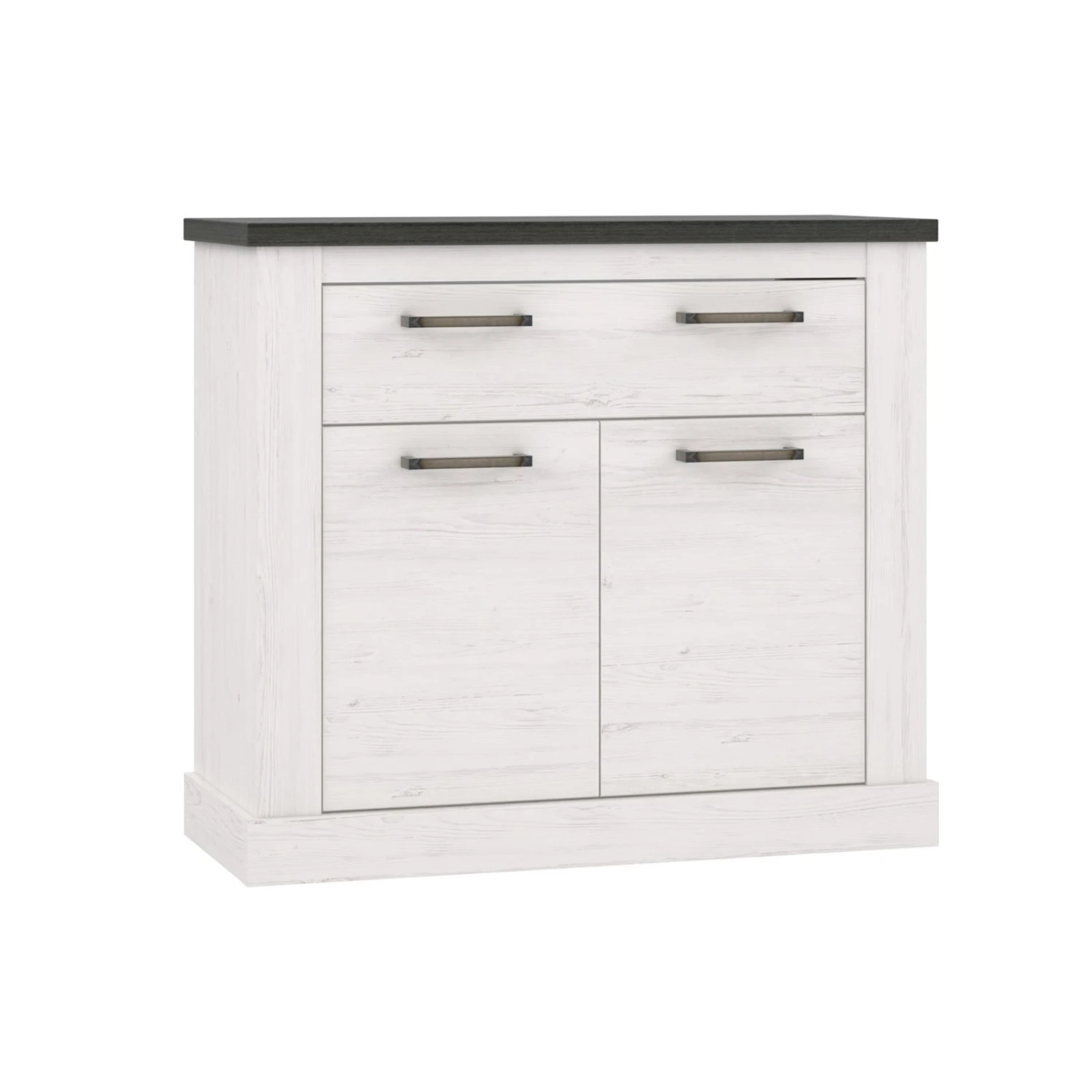 In dieser etwa 102 Zentimeter breiten Kommode finden Sie eine Menge Stauraummöglichkeiten für die verschiedensten Utensilien. Hinter den beiden Türen können Sie beispielsweise Ihr Schuhe verstauen und im zweigriffigen Schubkasten finden kleinere Gebrauchsgegenstände reichlich Platz. Der Farbmix aus Pinie weiß und Touchwood Nachbildung wird in Ihrem Eingangsbereich für ein modernes Ambiente sorgen.