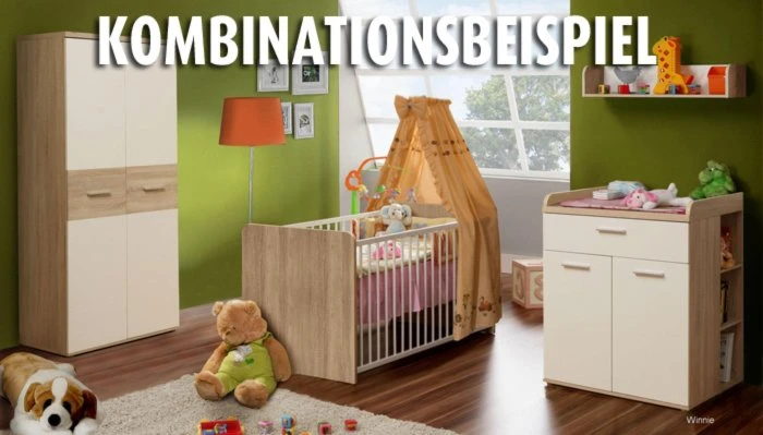 Modernes Babyzimmer in der Farbkombination Sonoma Eiche kombiniert mit Uni weiss
