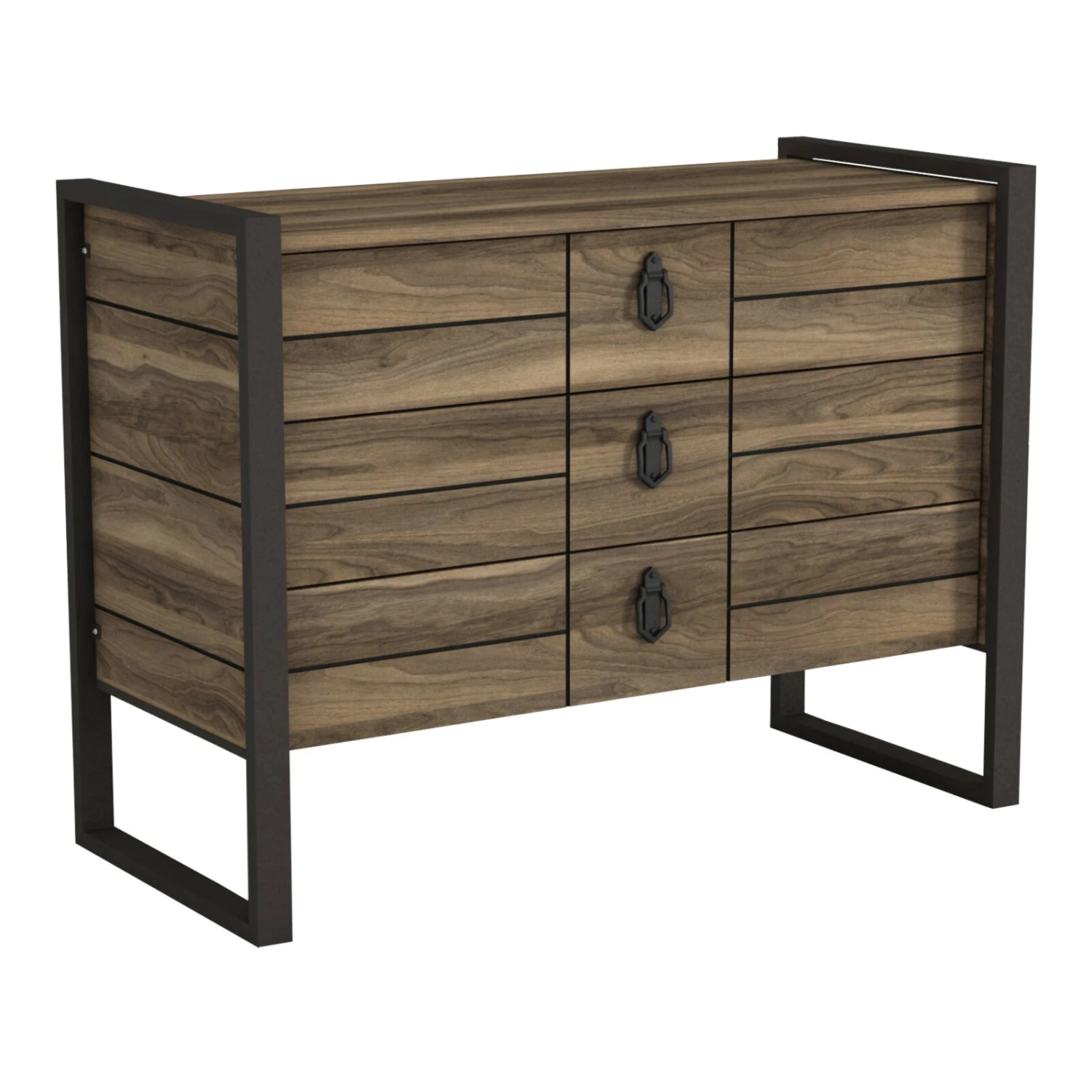 Die Kommode punktet nicht nur durch die moderne Used-Holzoptik, sondern auch durch seinen umfangreichen Stauraum. Der Walnusston und die schwarzen Metallfüße machen dieses Möbelstück zum echten Hingucker. Für den Wohnbereich eine perfekte Ergänzung.