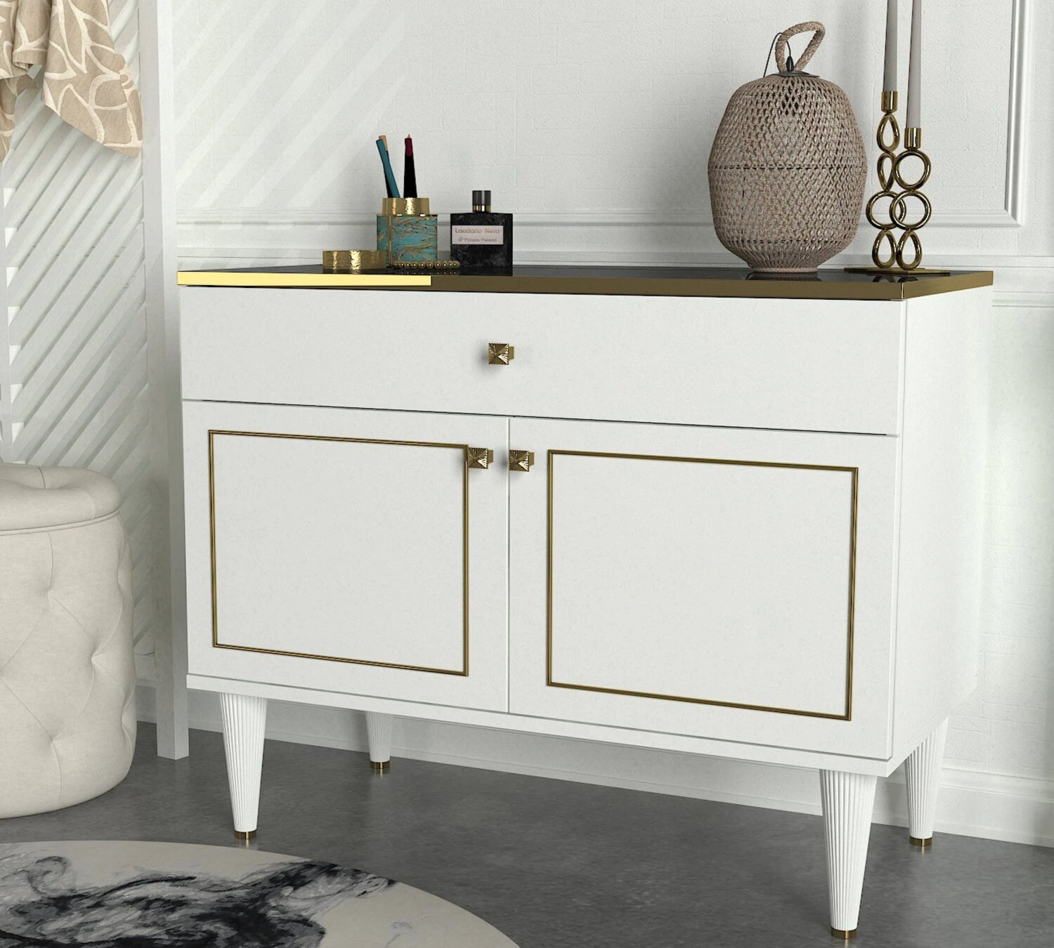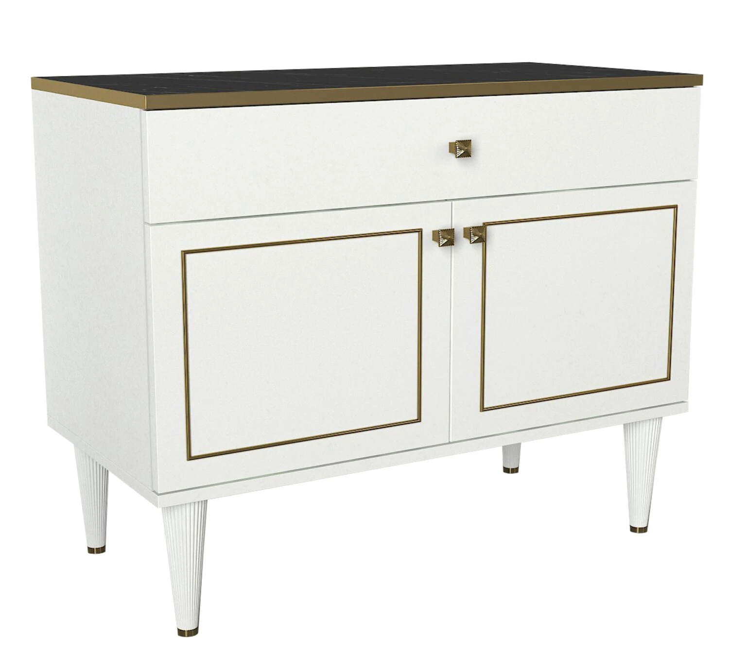 Kommode – weiß-gold – mit Verzierungen – 90 cm breite