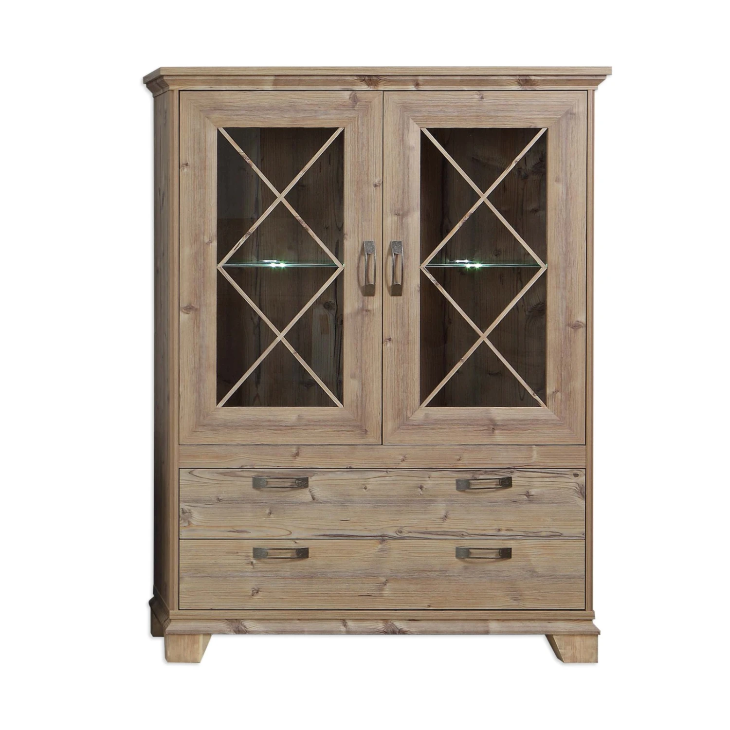 Das wunderschöne Wohnwand-Set macht Ihr Wohnzimmer zu einem gemütlichen Mittelpunkt des Lebens. Front und Korpus in Bramberg Fichte sind extravagant gestaltet und werden durch die silbernen Griffe abgerundet, jedoch entsteht durch die Maserung eine angenehme Gemütlichkeit. Sie finden hinter den Türen und auf mehreren Einlegeböden reichlich Platz für Ihre Lieblingsstücke. Auf dem Lowboard gibt es die Möglichkeit einen Fernseher, Receiver oder Spielekonsolen zu platzieren. Nutzen Sie die Vitrinenelemente um besondere Erinnerungsstücke oder außergewöhnliches Geschirr zu präsentieren.