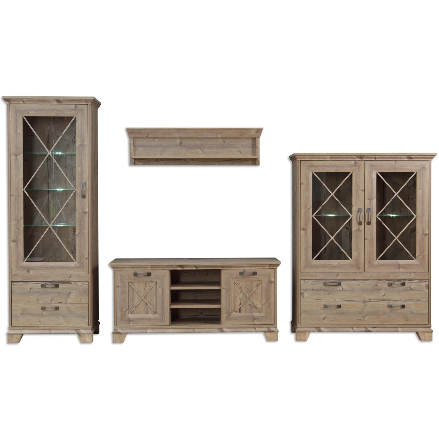 Landhaus Wohnwand-Set – Bramberg Fichte – 341 cm