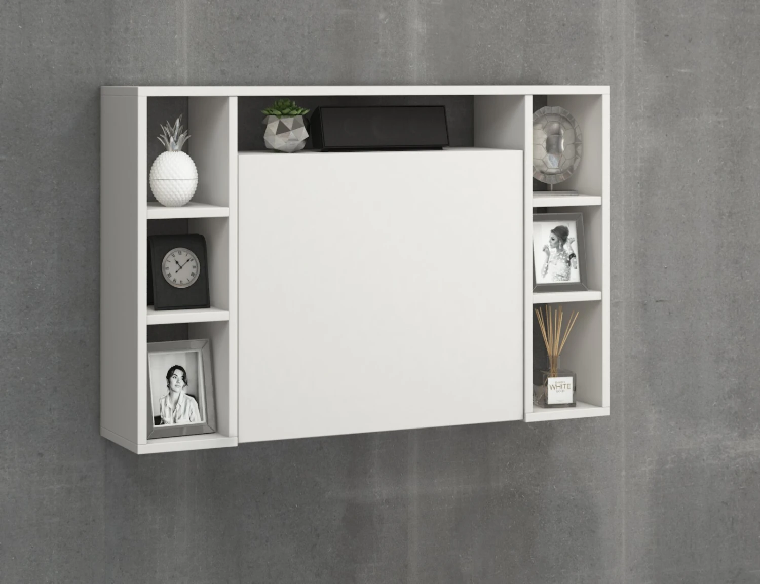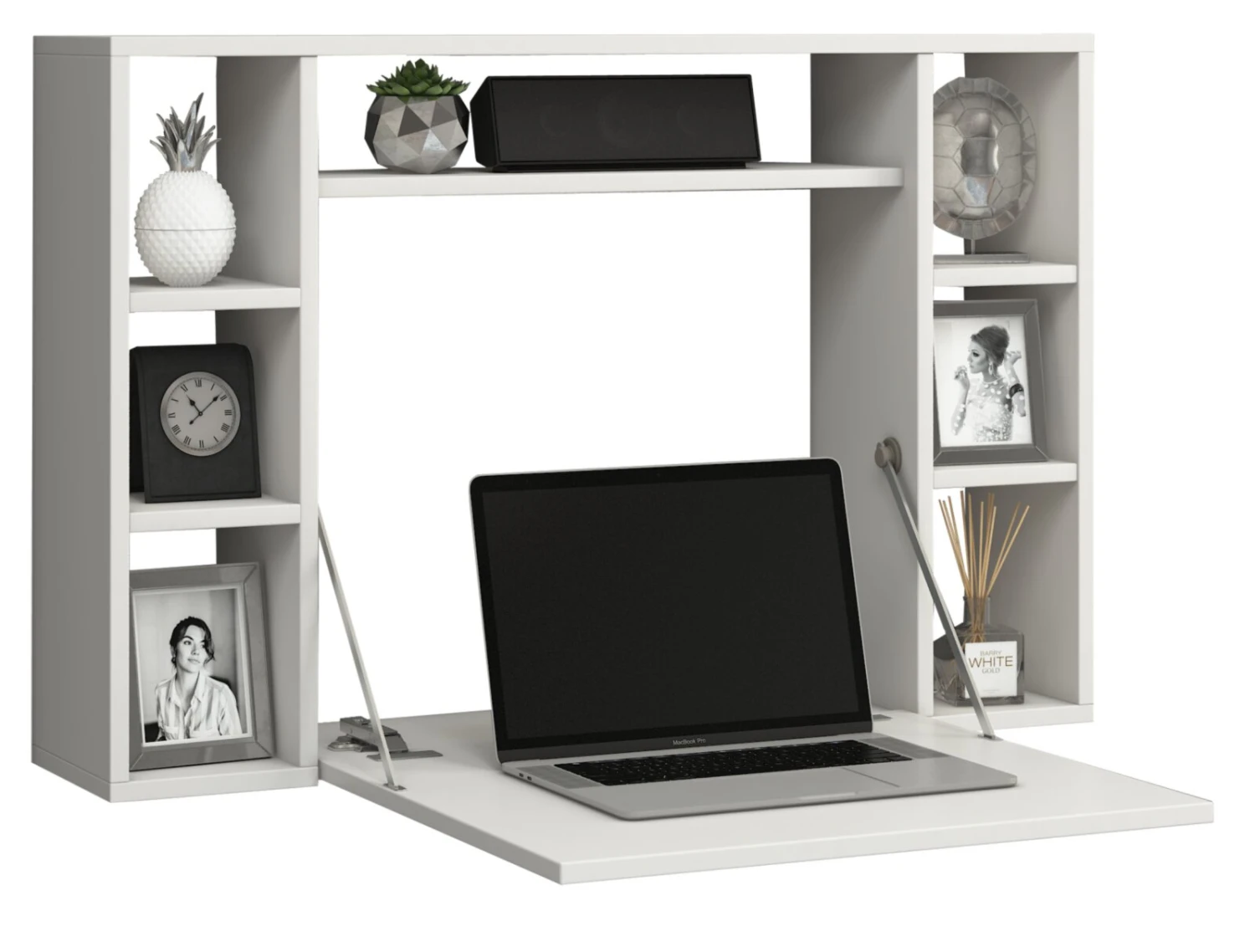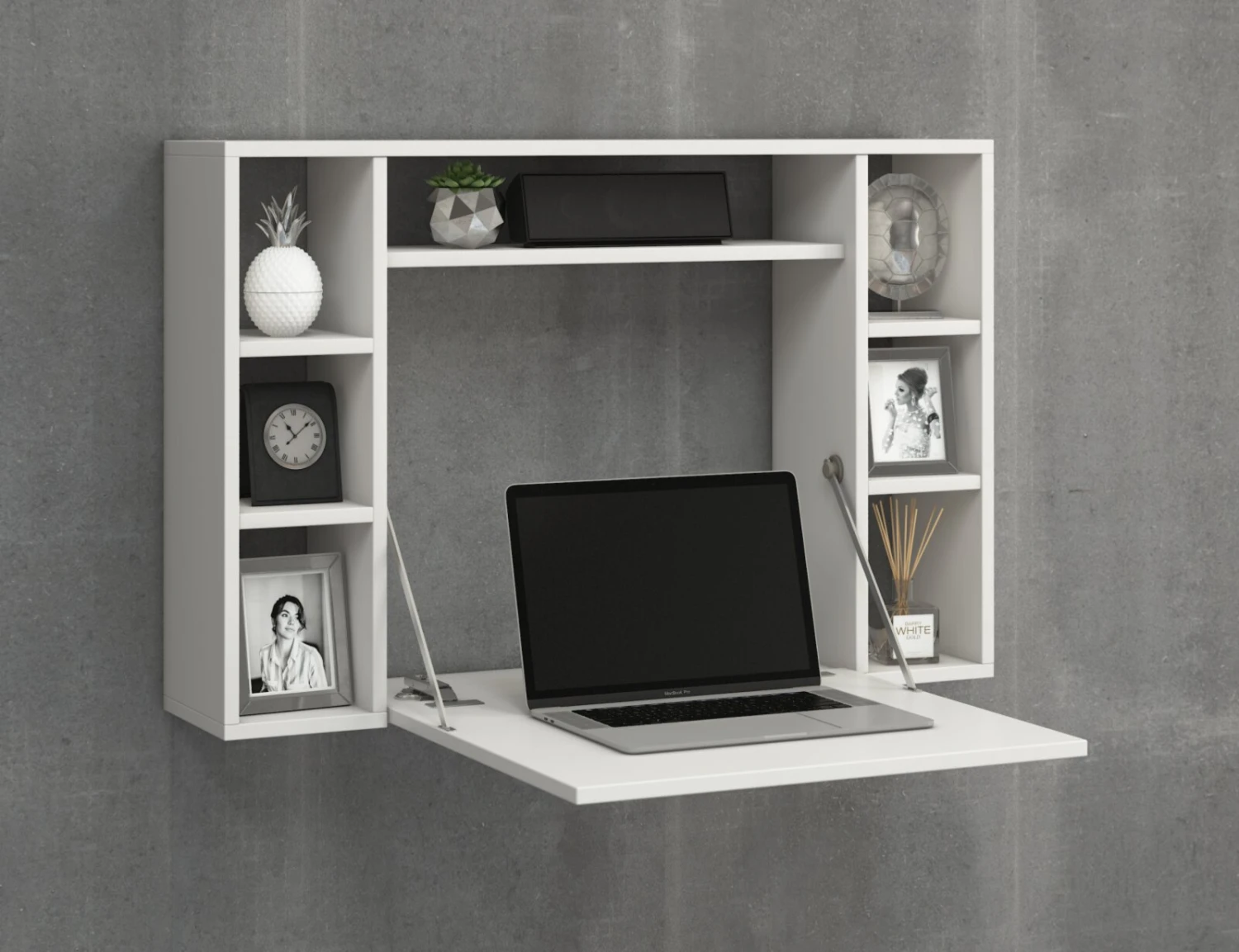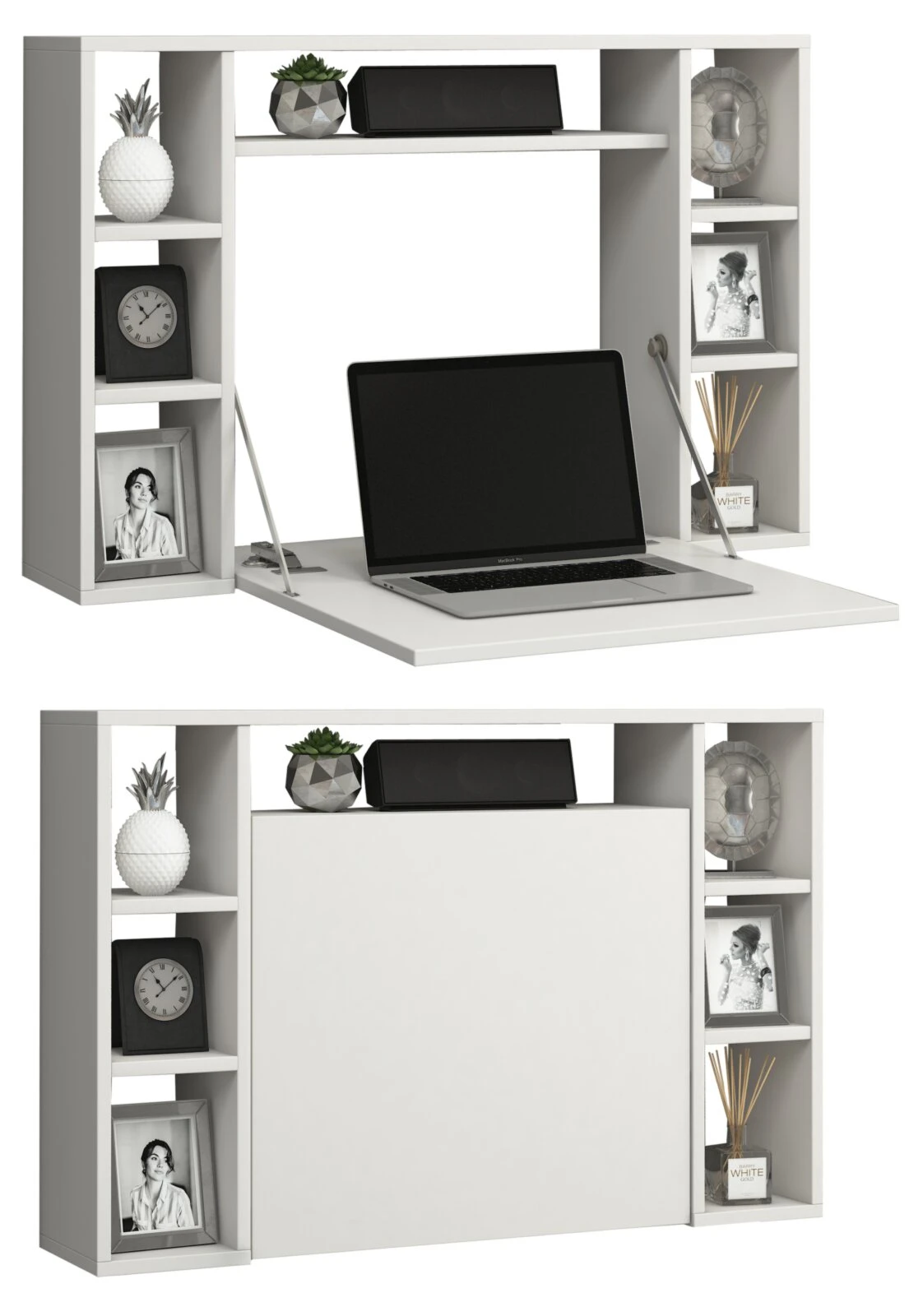 Platzsparender ausklappbarer Laptoptisch zur Montage an der Wand. Dieser praktische Laptoptisch ist die optimale Lösung um Platz zu sparen. Aber auch optisch hat er einiges zu bieten. Durch die sieben Ablagefächer haben Sie reichlich Möglichkeiten Ihre Deko wunderbar zu präsentieren.