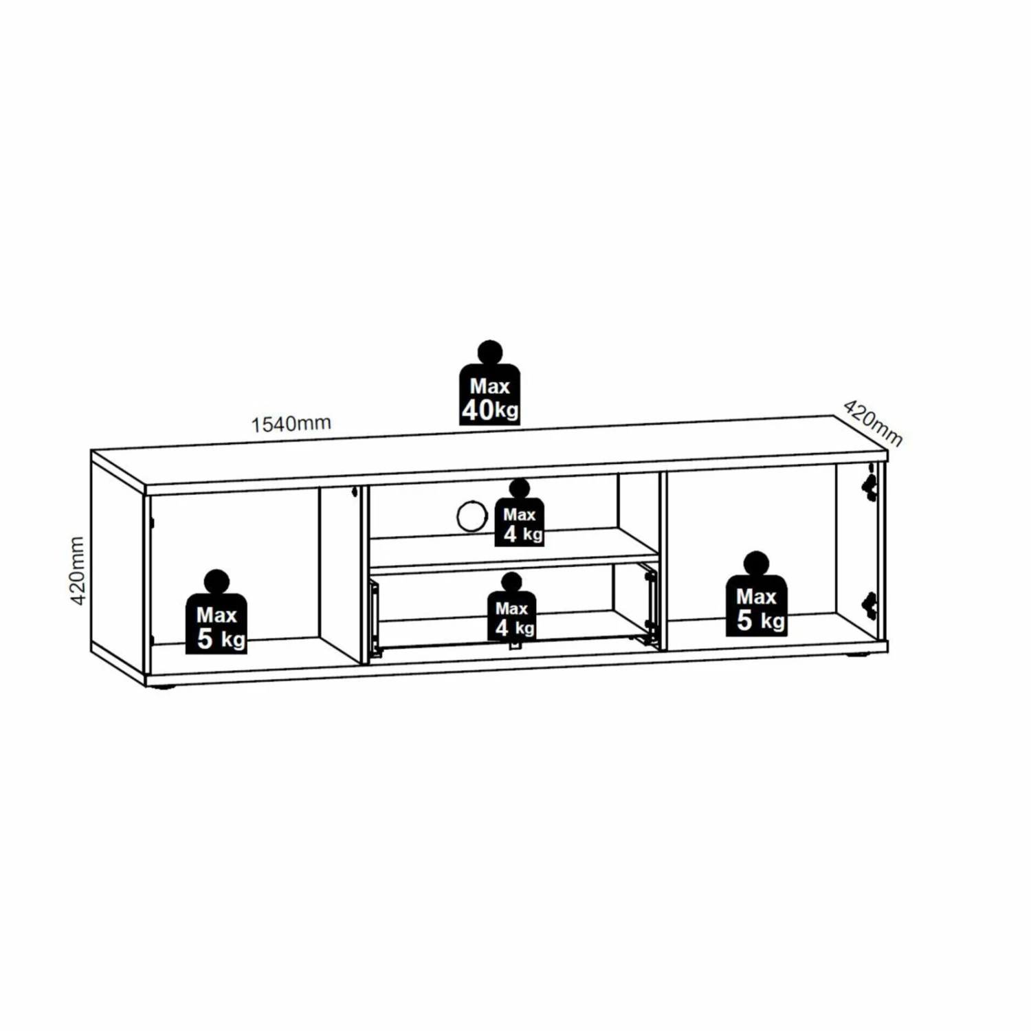 - Maße: BxHxT ca. 154 x 42 x 42 cm