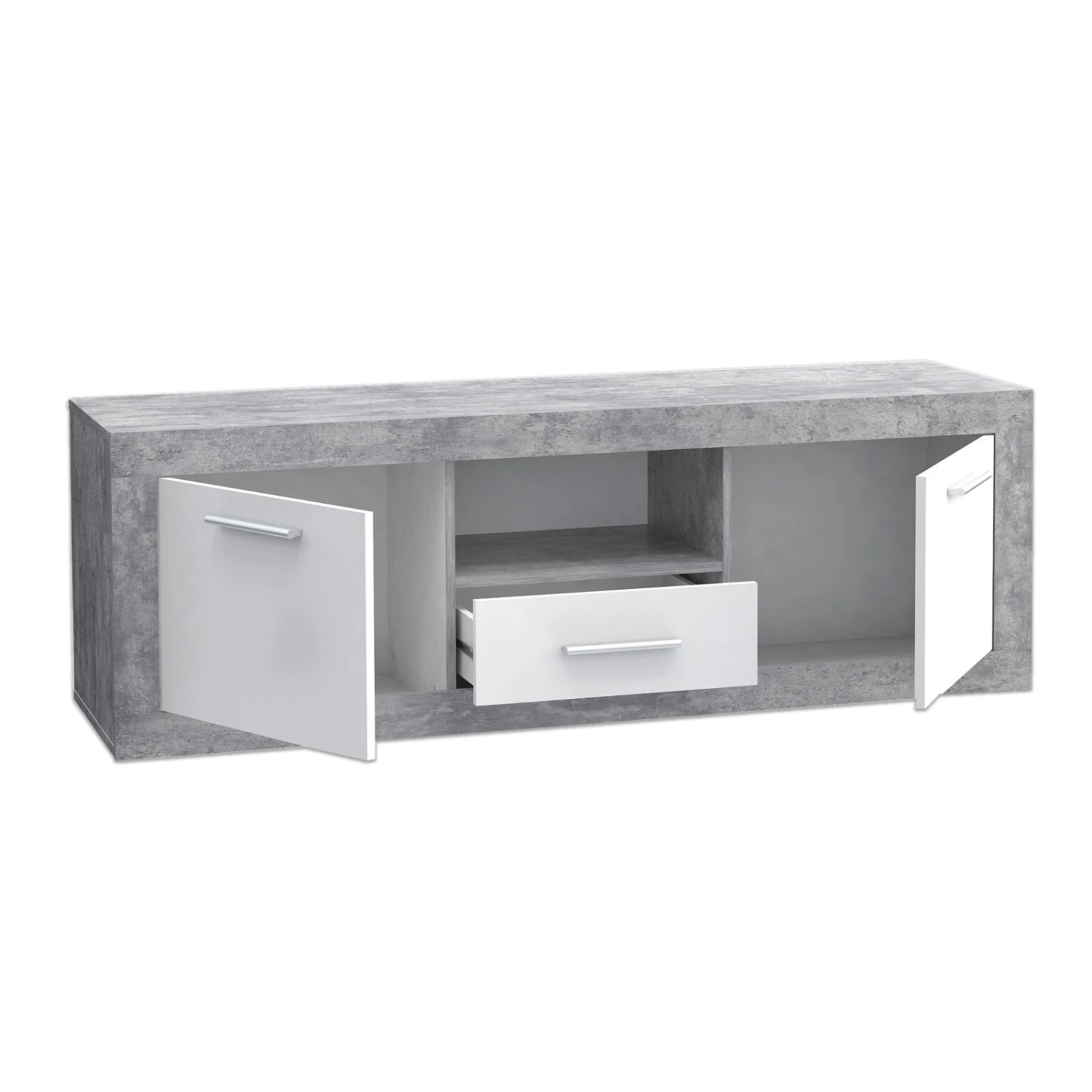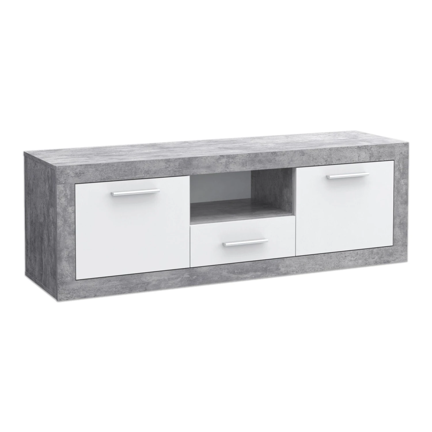 Das stylische Lowboard hat einen Korpus in grauer Betonoptik mit weißen Schubladen. Es bietet nützlichen Stauraum, ist ein perfekter Abstellort für Ihren Fernseher und ein echter Hingucker in jedem Wohnzimmer.