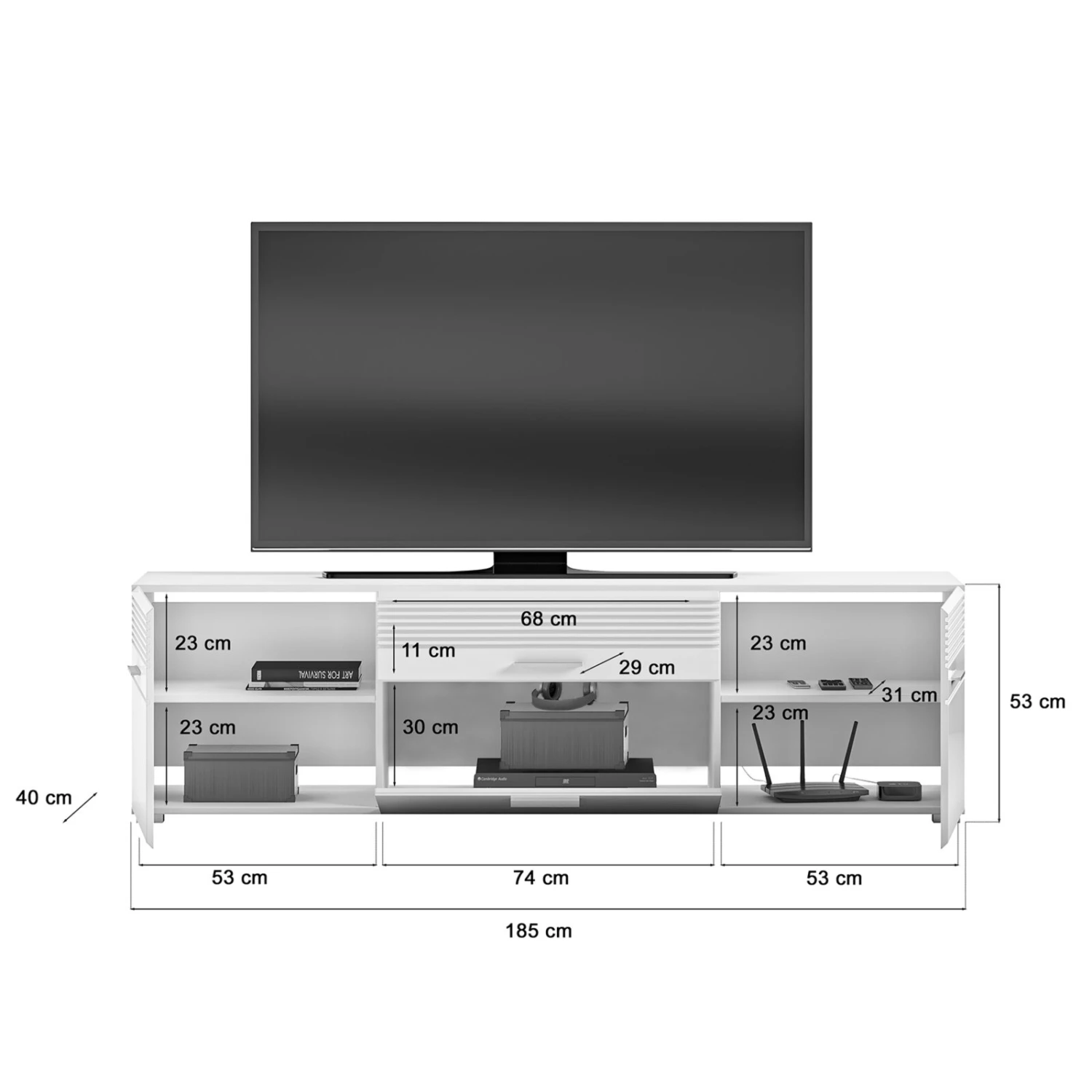 Lowboard LINUS – weiß Hochglanz-weiß – 2 Türen – 185 cm
