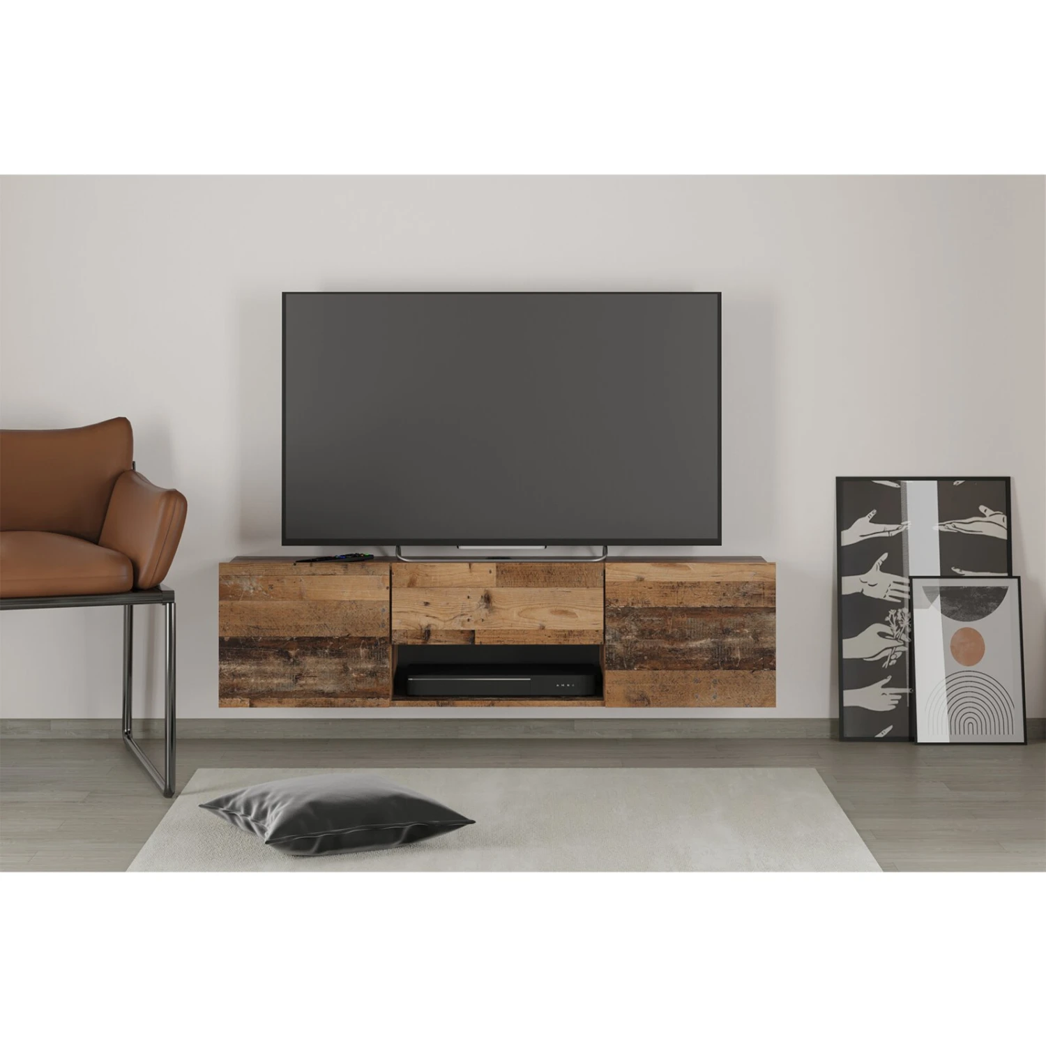 Mit diesem Lowboard haben Sie nicht nur endlich die perfekte Abstellmöglichkeit für Ihren Fernseher, sondern verschaffen sich auch zusätzlichen Stauraum für TV-Zubehör und andere Gegenstände. Auch überzeugt das Möbelstück durch das moderne und zeitlose Design. Füße und Wandbefestigungen sind im Lieferumfang inklusive.