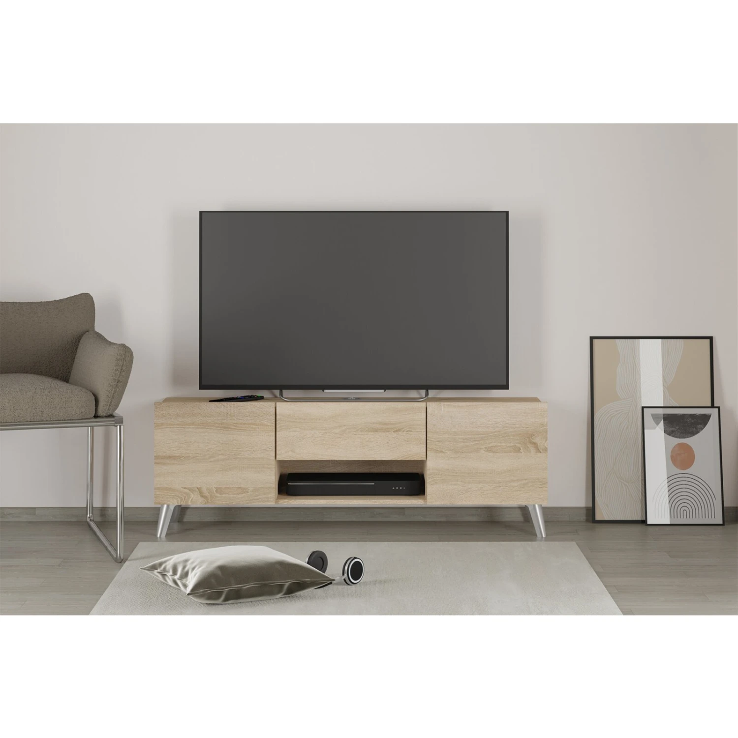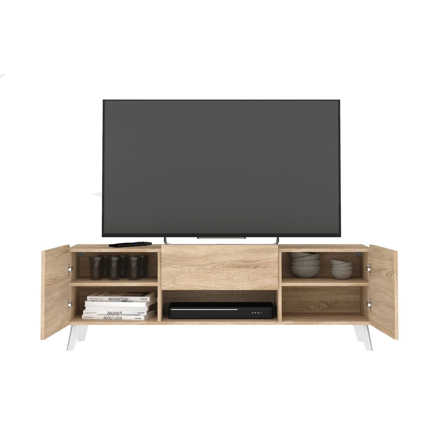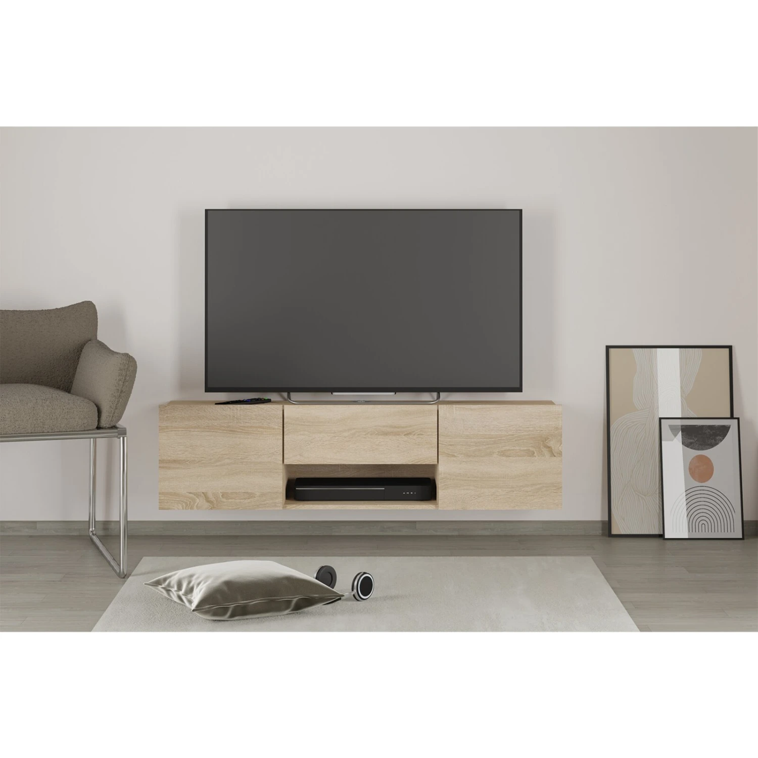 Dieses Lowboard dient nicht nur als einfache Abstellmöglichkeit für Ihren Fernseher. Mit zwei Türen, einem Schubkasten und einer offenen Ablagefläche bietet das Möbelstück genug Stauraum, um alltägliche Gegenstände und TV-Zubehör zu verstauen. Wollen Sie, dass das Lowboard an der Wand hängt oder dass es steht? Sie können selbst entscheiden!