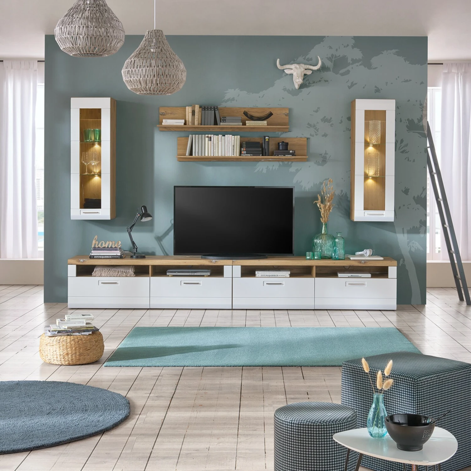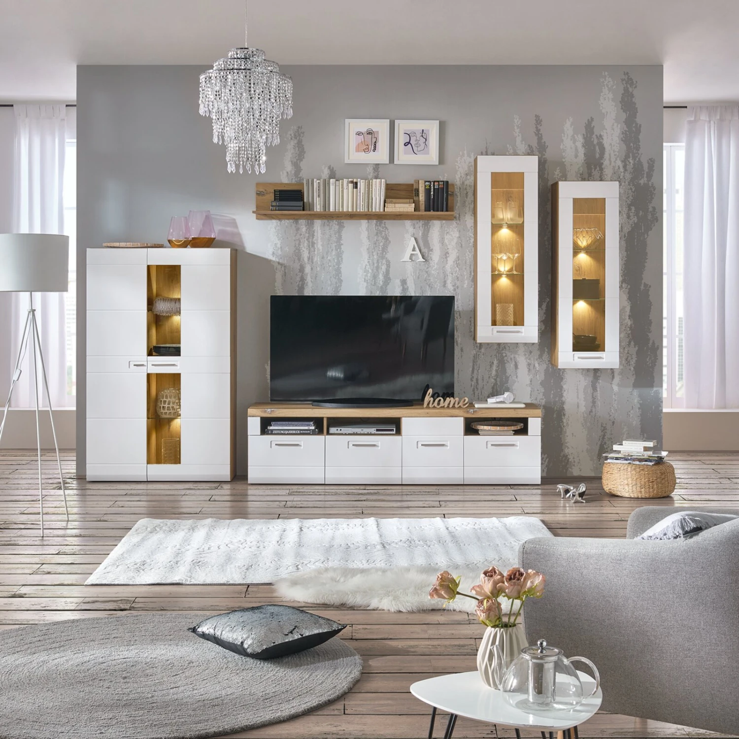 Luca Bessoni Hängevitrine AURIS – weiß-Flagstaff Eiche