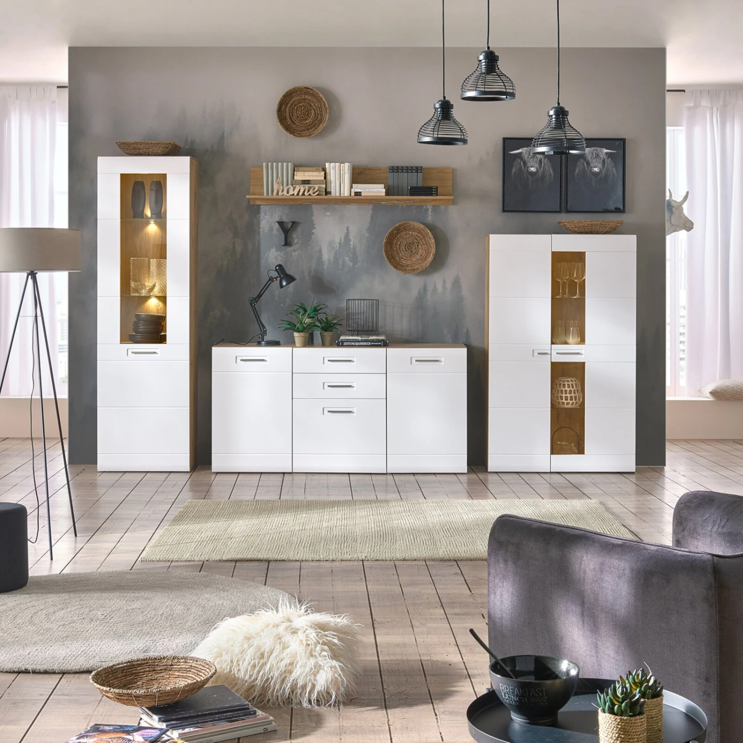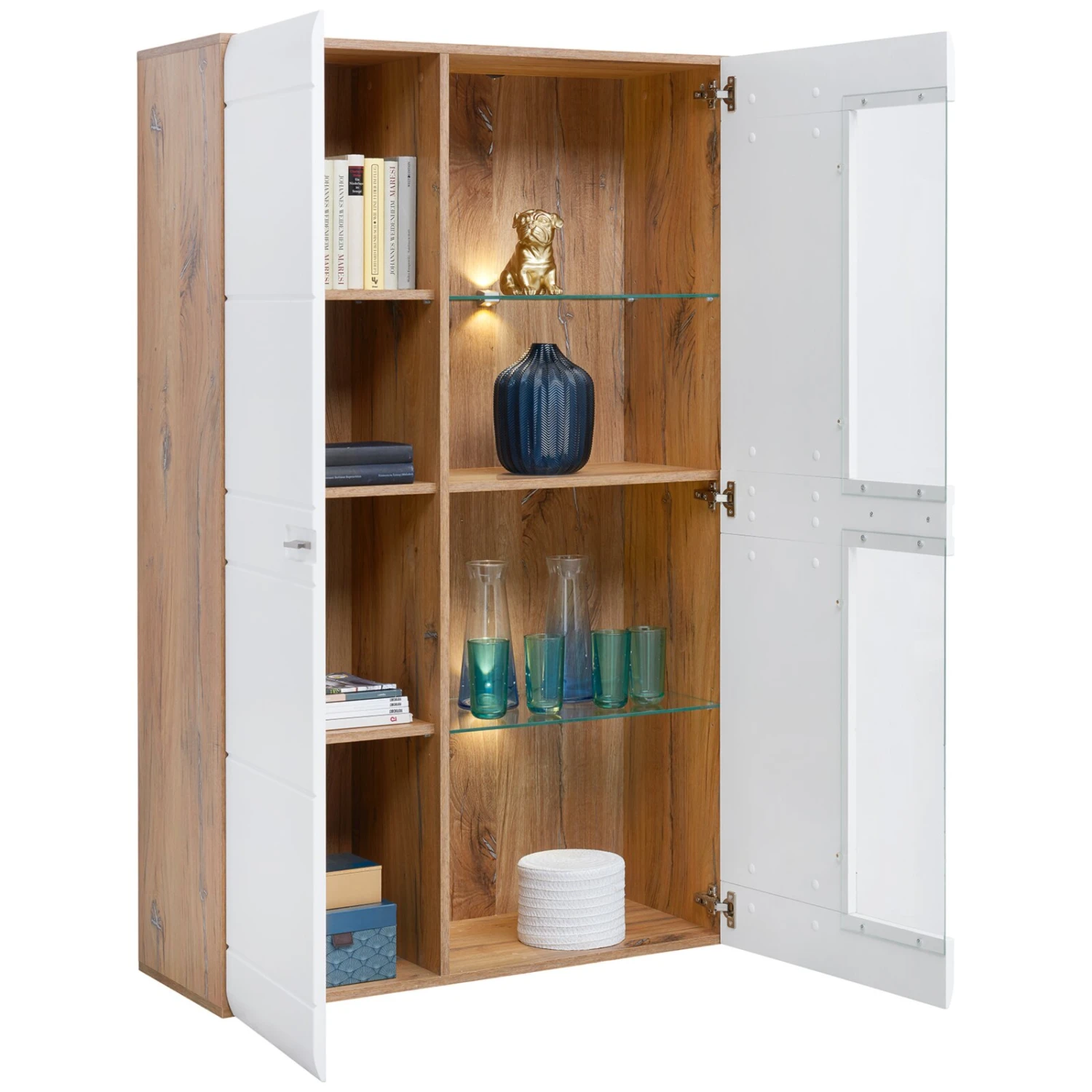 Luca Bessoni Highboardvitrine AURIS – weiß-Flagstaff Eiche – 95 cm