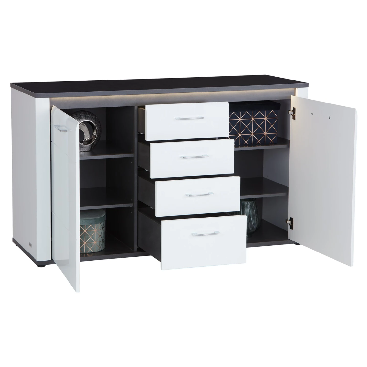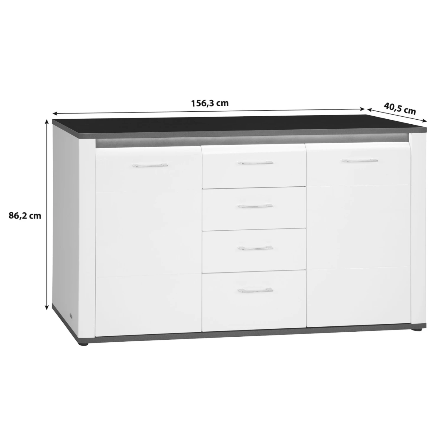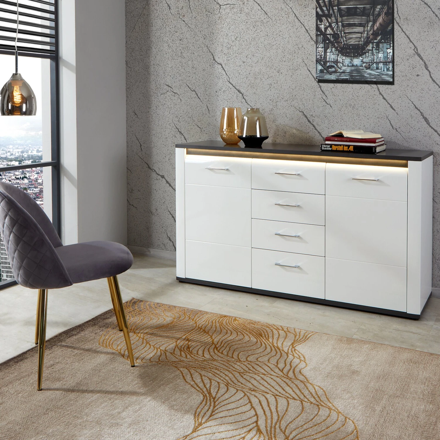 Luca Bessoni Kommode ALASSIO – weiß Hochglanz – Matera dunkel – 156 cm