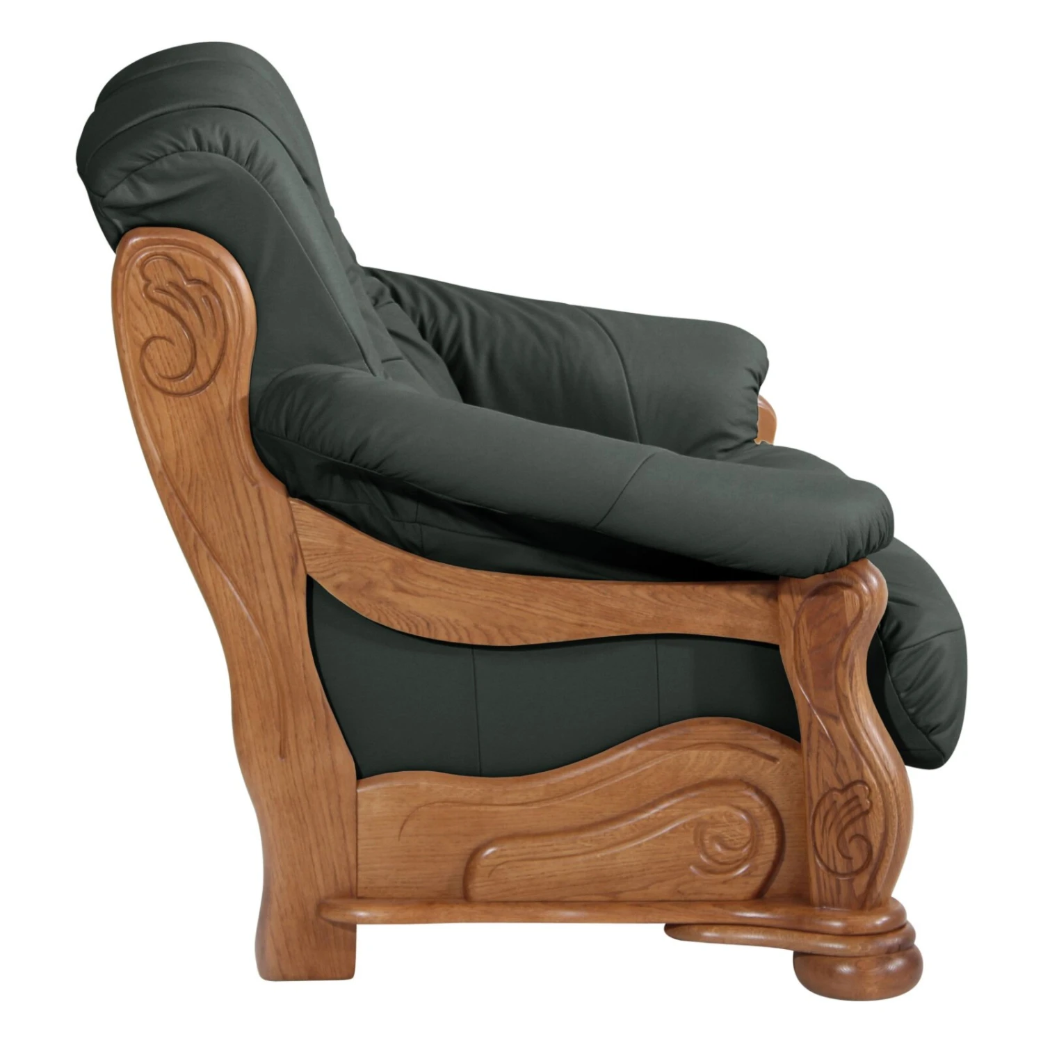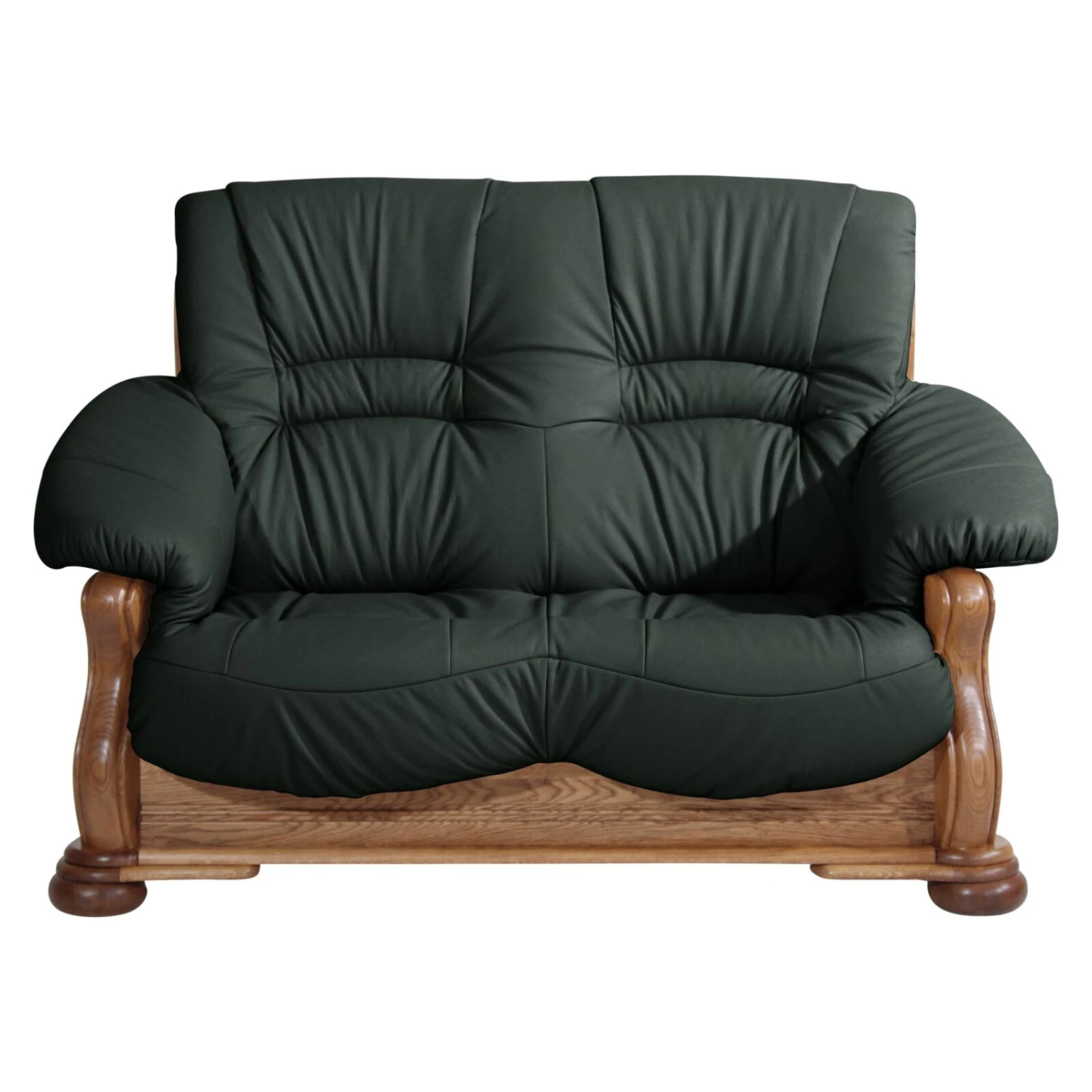Durch diesen 2-Sitzer kreieren Sie in jedem Raum eine wohnliche Atmosphäre. Die Kombination aus dem hochwertigen Massivholzgestell aus Eiche und dem dunkelgrünen Bezug aus pigmentiertem Nappaleder verbreitet Gemütlichkeit. Die gedrechselten Füße und die liebevollen Verzierungen des Gestells runden das Wohnhighlight stilvoll ab. Für einen hohen Komfort ist der Sitz mit einem schaumummantelten Einzelfederkern gepolstert, so dass Sie viele schöne Stunden erleben können.
