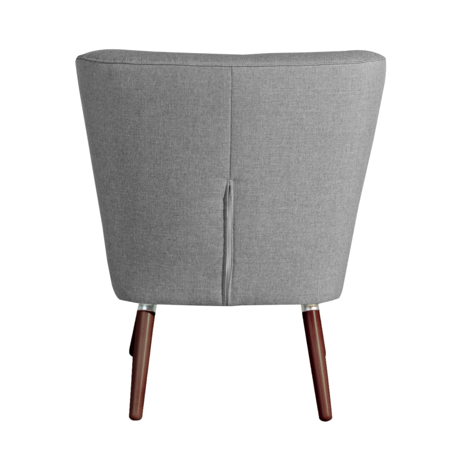 Dieser formschöner Sessel in Grau mit vier Zierknöpfen im angesagten Retro-Stil. Der Cocktailsessel ist in vielen verschiedenen Bezugstoffen von modern bis verträumt erhältlich. Wählen Sie Ihren Lieblingsstoff und kreieren Sie einen tollen Blickfang für Ihr Zuhause. Die markanten Holzfüße sind zur einfachen Selbstmontage. Der Cocktailsessel hat eine optimale Sitzhöhe von 44 cm.
