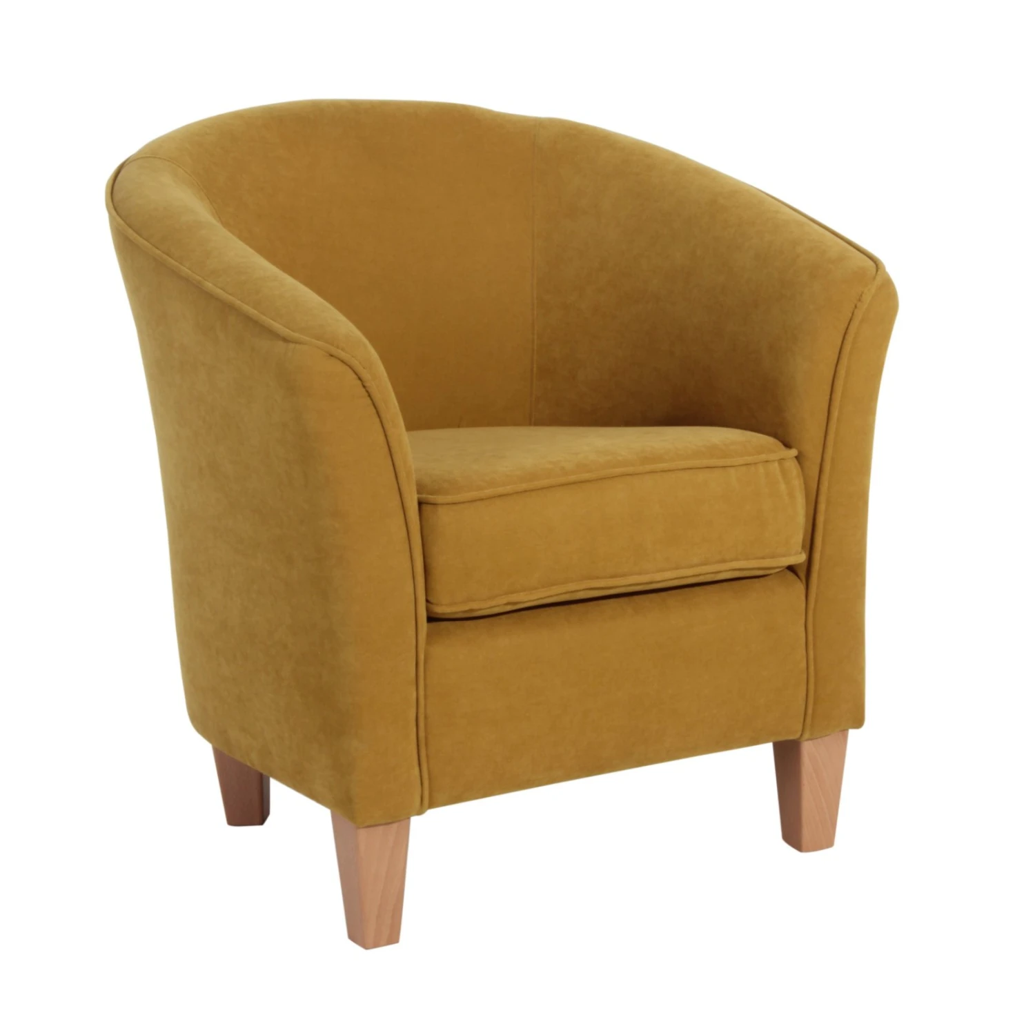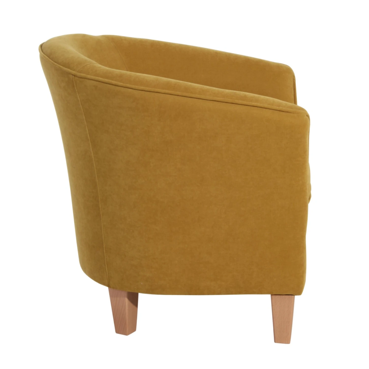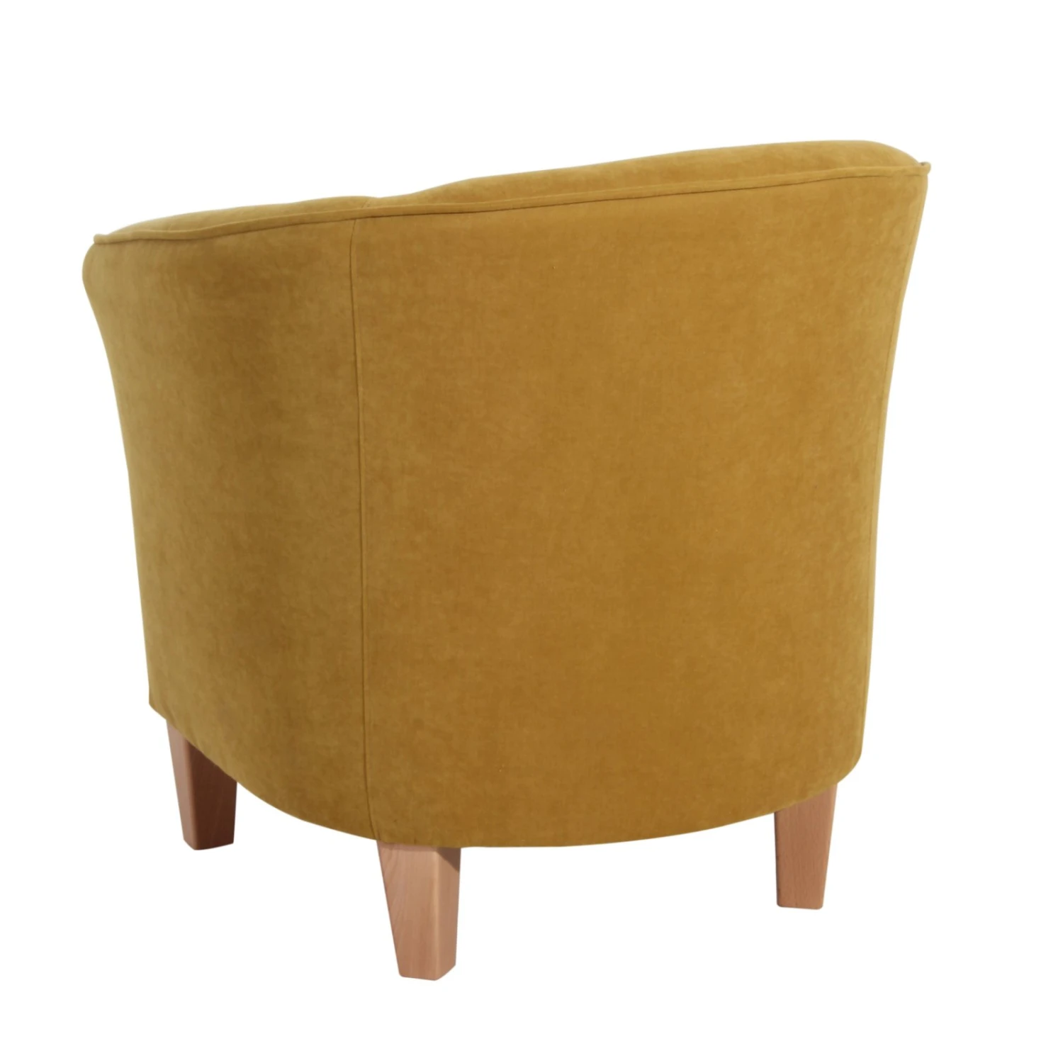 Kleiner, zierlicher Cocktailsessel in Mais, der universell kombinierbar ist und in jeden Raum passt. Er überzeugt durch seine wunderschöne Optik. Die Füße sind zur einfachen Selbstmontage, bestehen aus Buche und sind trapezförmig. Der Cocktailsessel hat eine ideale Sitzhöhe von 45cm.