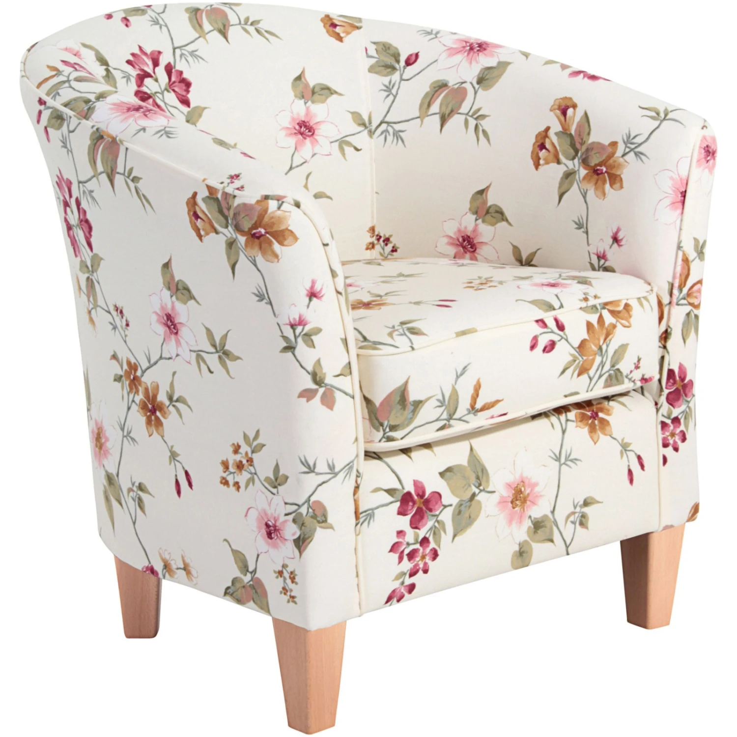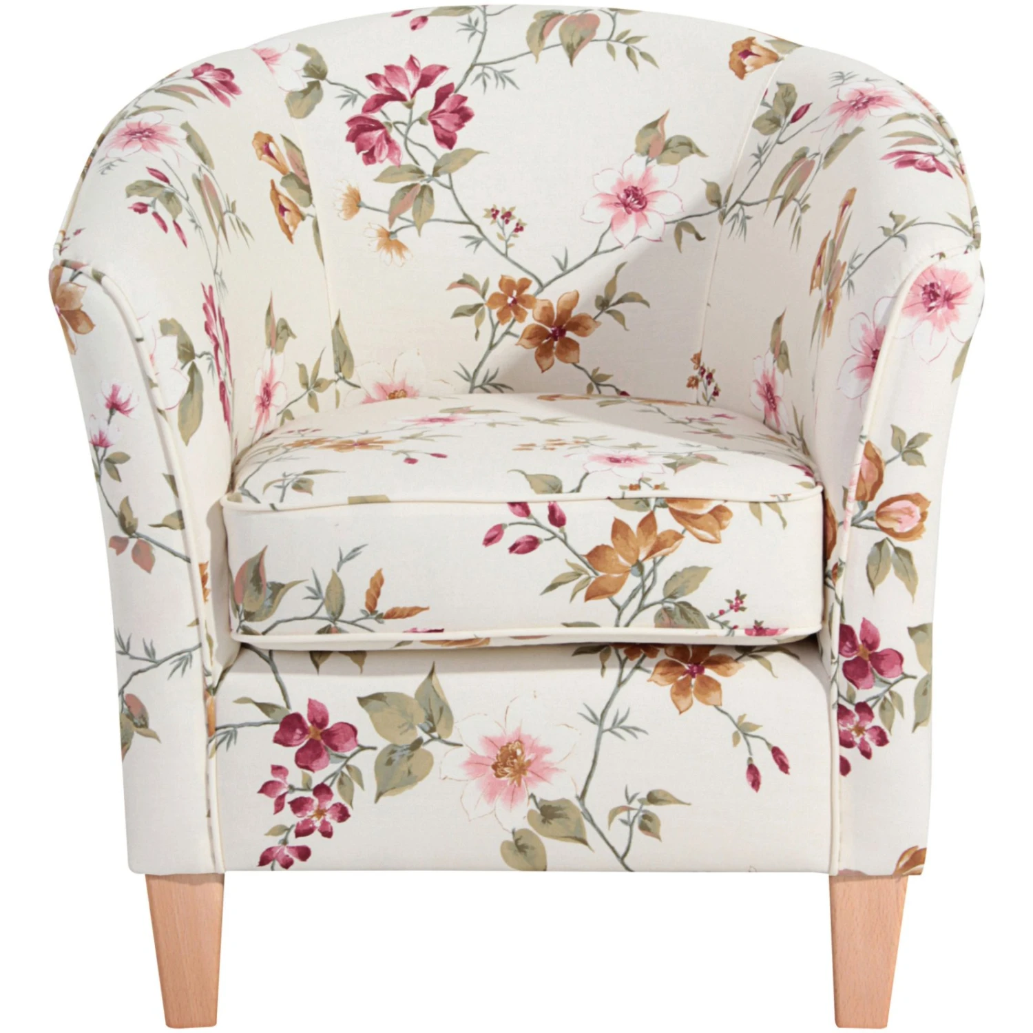 Max Winzer Cocktailsessel – weiß – floral – Flachgewebe – Buche-Natur Füße