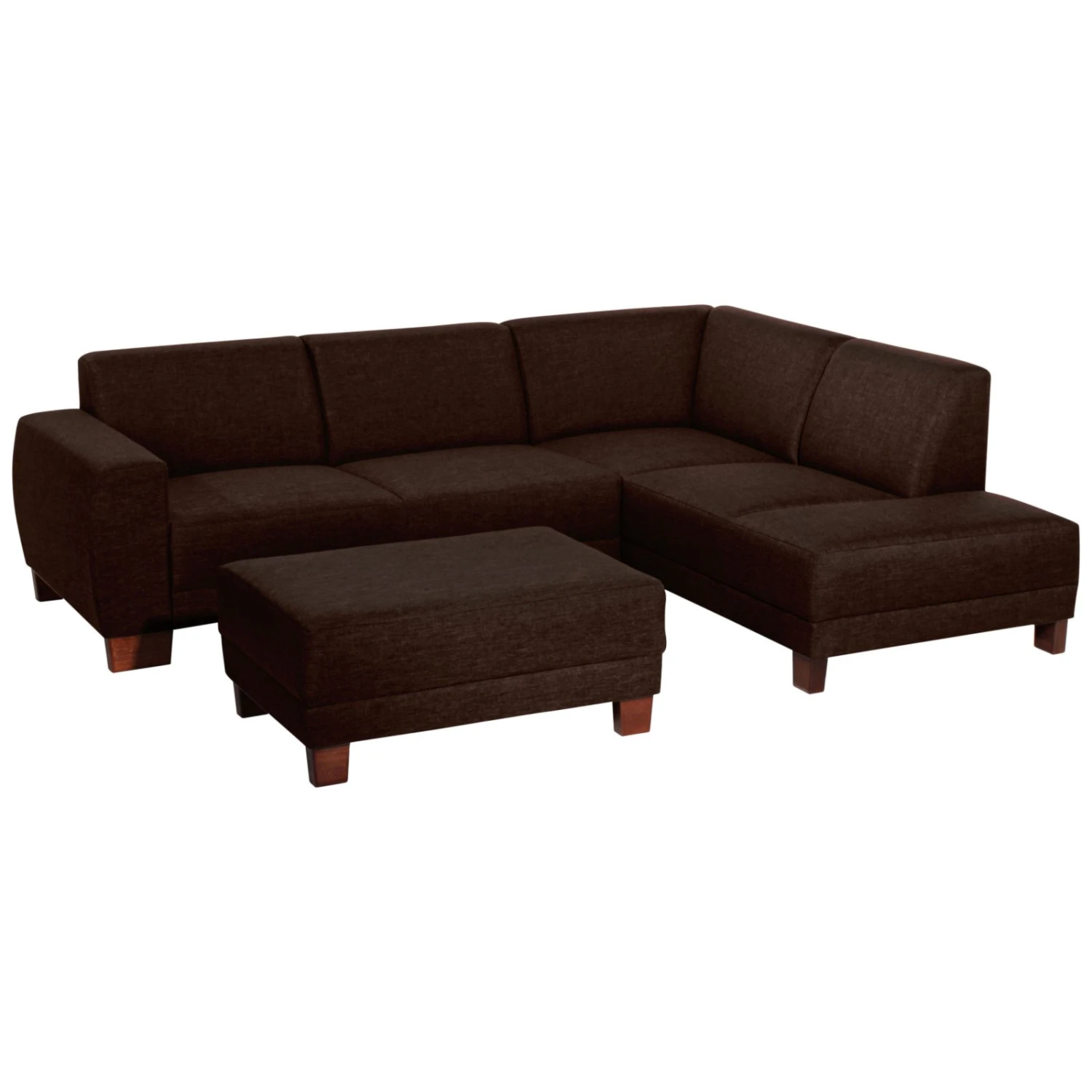 Mit dieser Polsterecke erhalten Sie klassisches, zeitloses Design. Die gradlinige Erscheinung wird in jedem Raum sehr gut aussehen und zum Verweilen einladen. Der Bezug ist ein schokofarbenes Flachgewebe mit moderner Leinenstruktur. Diese ist sehr angenehm auf der Haut. Die Wellenunterfederung ermöglicht einen komfortablen Sitz der durch den niedrigen, leicht gewölbten Rücken unterstützt wird. Der Polyätherschaum ist für seine Atmungsaktivität bekannt, so dass für eine angenehme Luftzirkulation gesorgt ist. Äußerlich runden die massiven Füße aus Buche in dunklem nussbaum die Erscheinung ab.