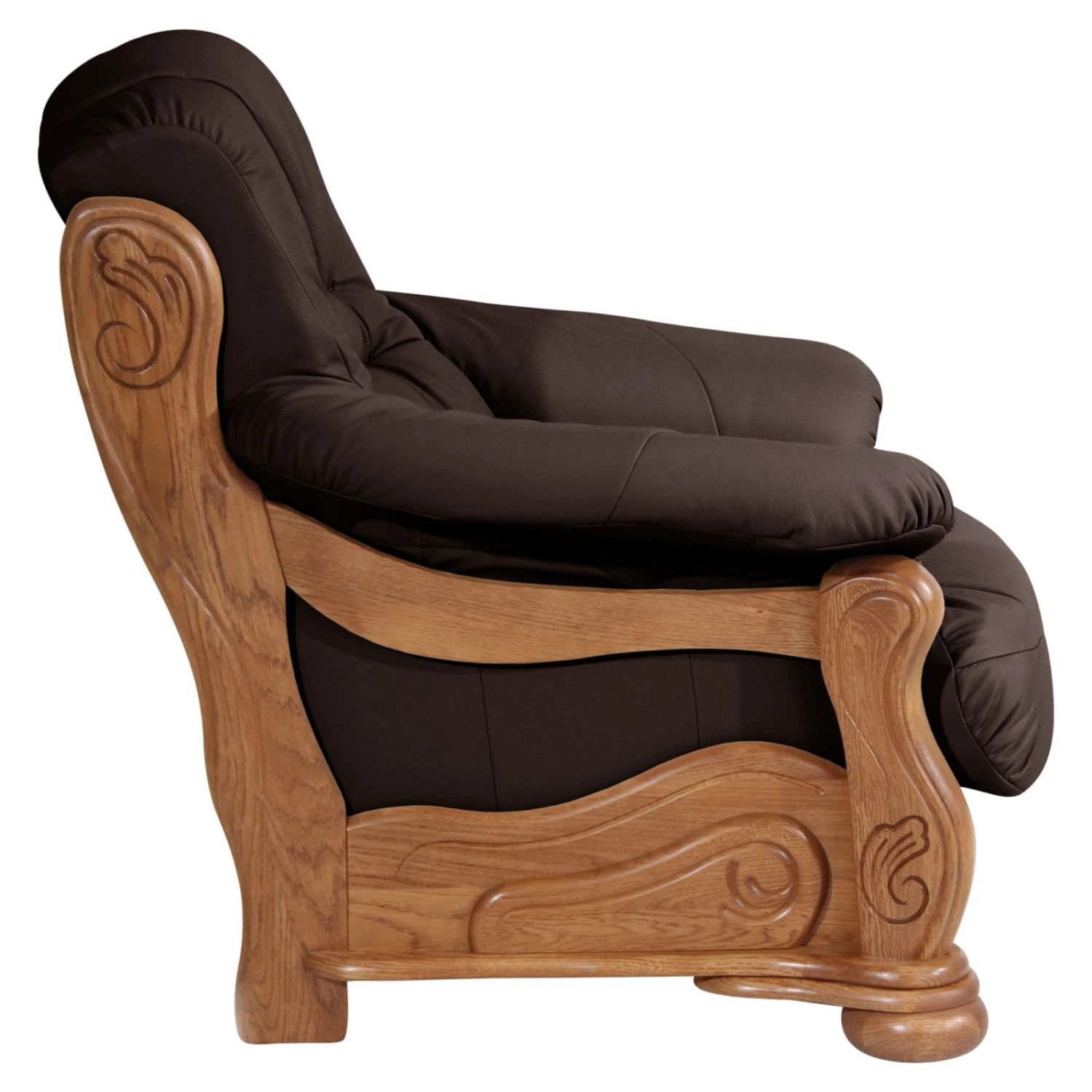 Rustikal und gemütlich beschreiben diesen Sessel am besten. Die Kombination aus dem hochwertigen Gestell aus massiver Eiche und dem echten Nappaleder Bezug kreieren eine wohnliche Atmosphäre. Die gedrechselten Füße und die liebevollen Verzierungen des Gestells runden das Wohnhighlight stilvoll ab. Für einen hohen Komfort ist der Sitz mit einem schaumummantelten Einzelfederkern gepolstert, so dass Sie viele schöne Stunden erleben können.