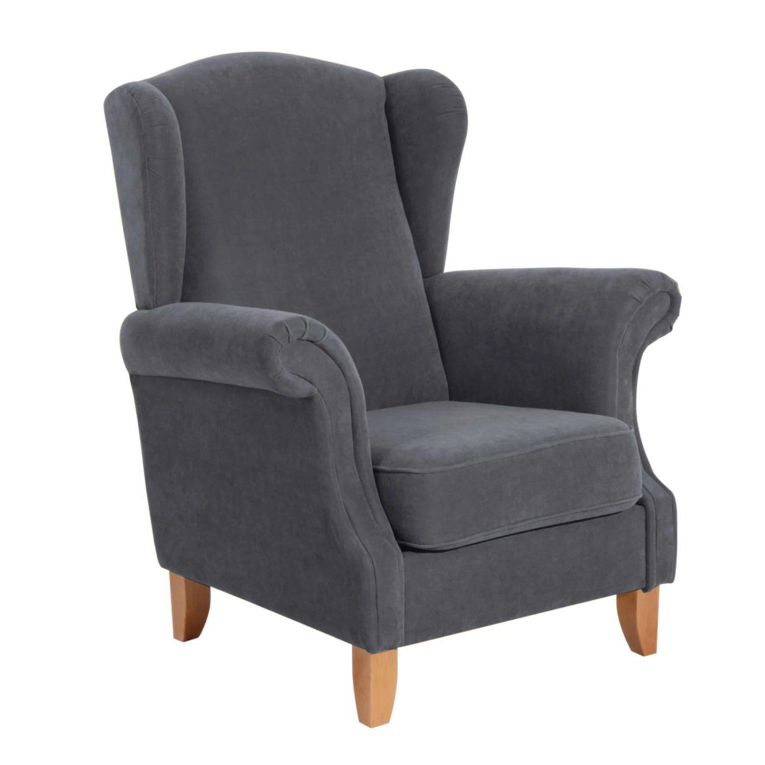 Max Winzer Ohrenbackensessel – anthrazit – Veloursstoff – mit Kissen